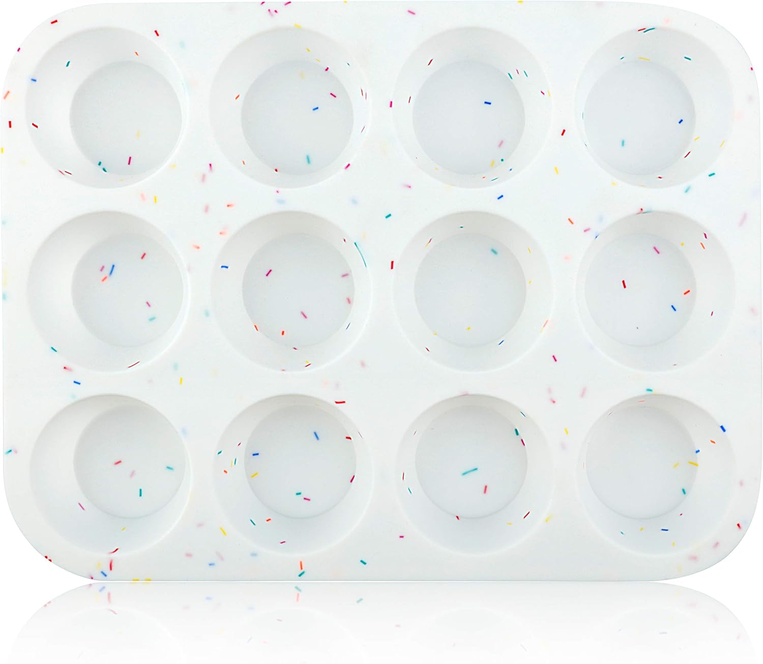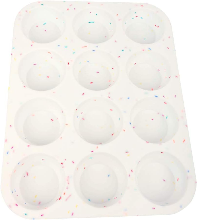 - FOOD-GRADE SILICONE: This fun confetti Muffin Pan gives you the simplicity and safety you need for baking-without casuing confusion.It is made of 100% food grade silicone, and bring muffin pans more flexible and durable. This Muffin Tin is Tasteless, European LFGB standard, BPA free