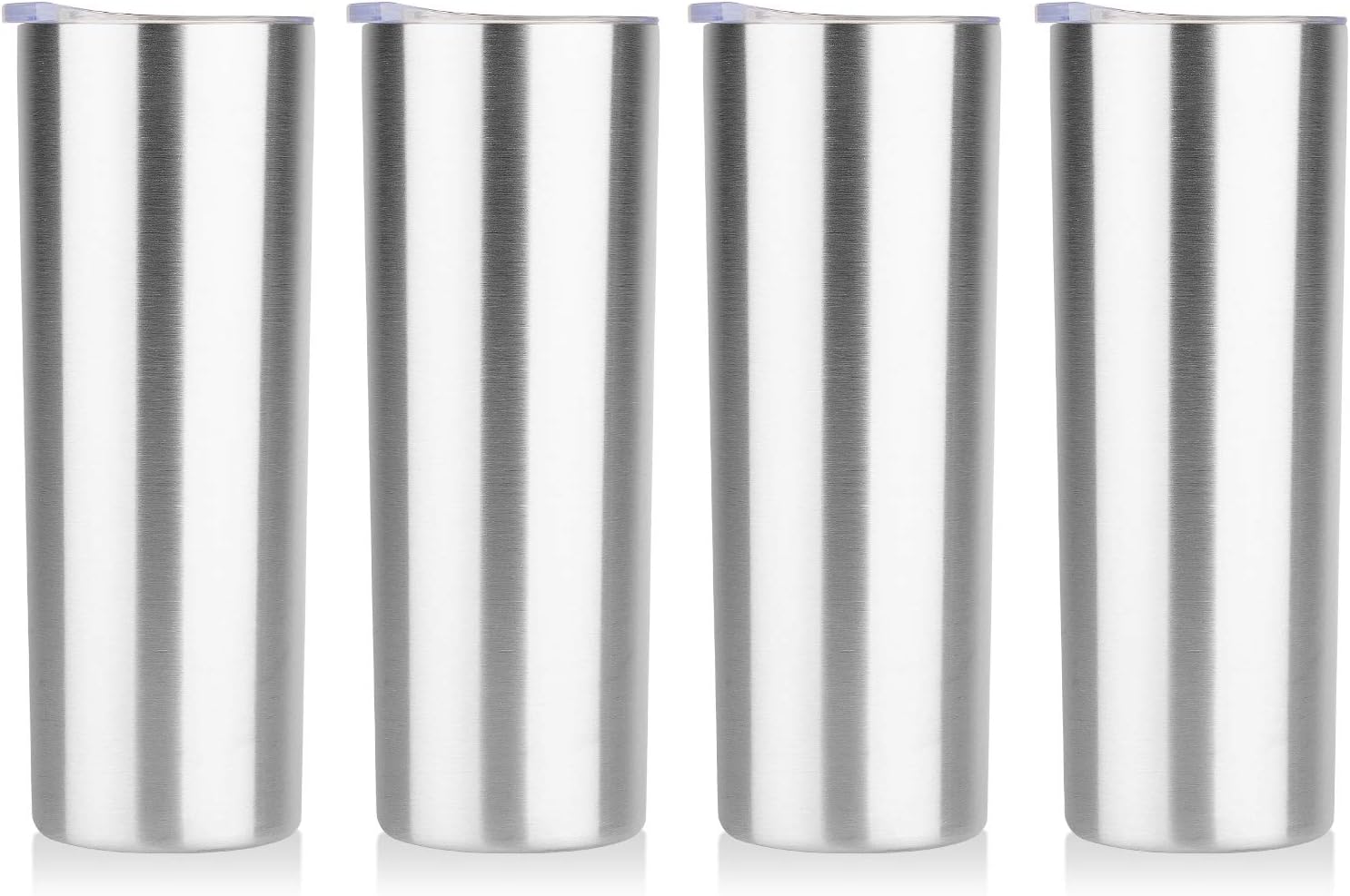 HASLE OUTFITTERS 20 oz Skinny Tumblers Bulk Set, Stainless Steel Insulated Slim Tumblers with Lids, Reusable Double Wall Travel Coffee Mugs, Durable Powder Coated Travel Water Cups (4)