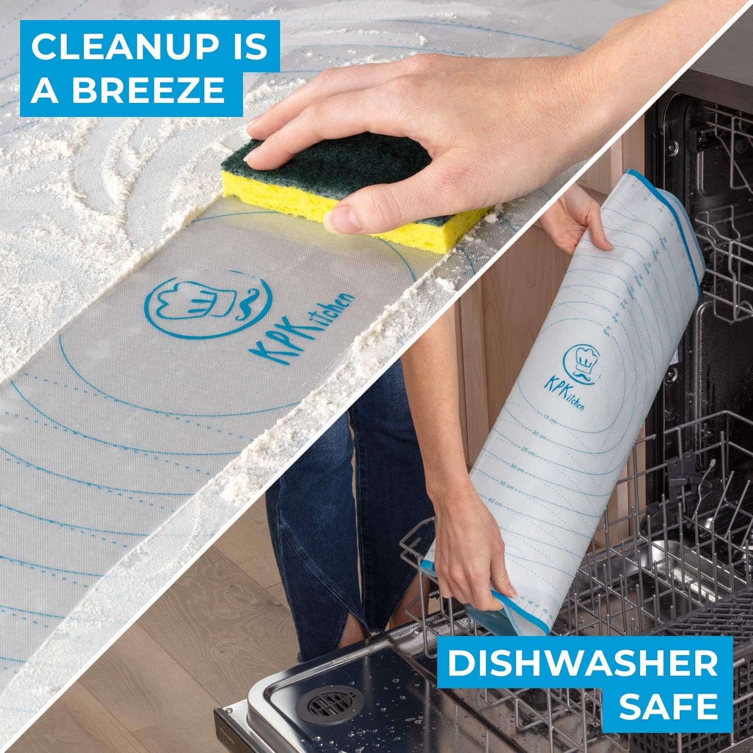 - π CLEAN UP IS A BREEZE! Because our dough rolling mats are super easy to clean & dishwasher safe, youβll be able to clean and wipe remaining food easily off or just put them into the dishwasher. This is great because this means you will save so much time by not having to scrub your dough mat for rolling extra large clean. And with our extra large silicone baking sheet size you keep the mess on the dough board and off your worktop.