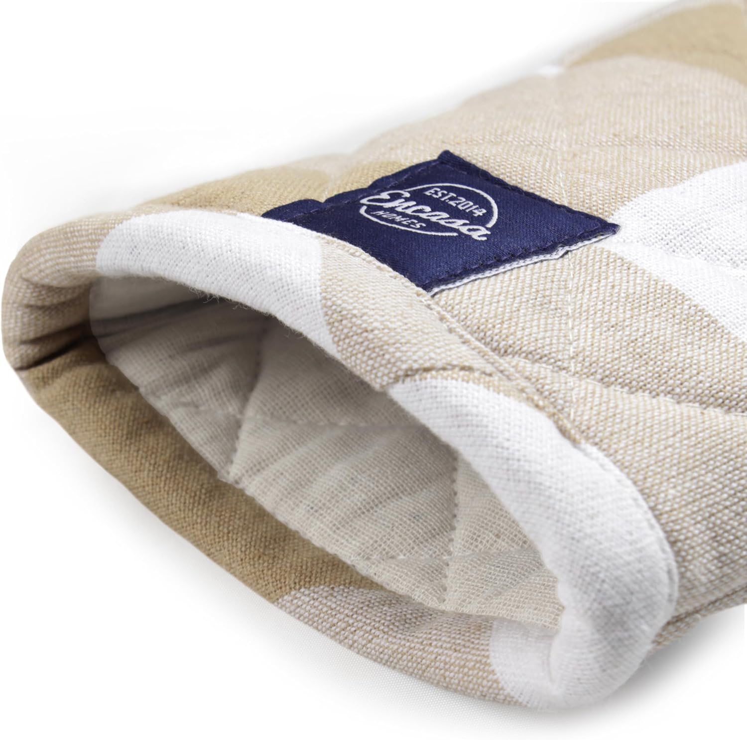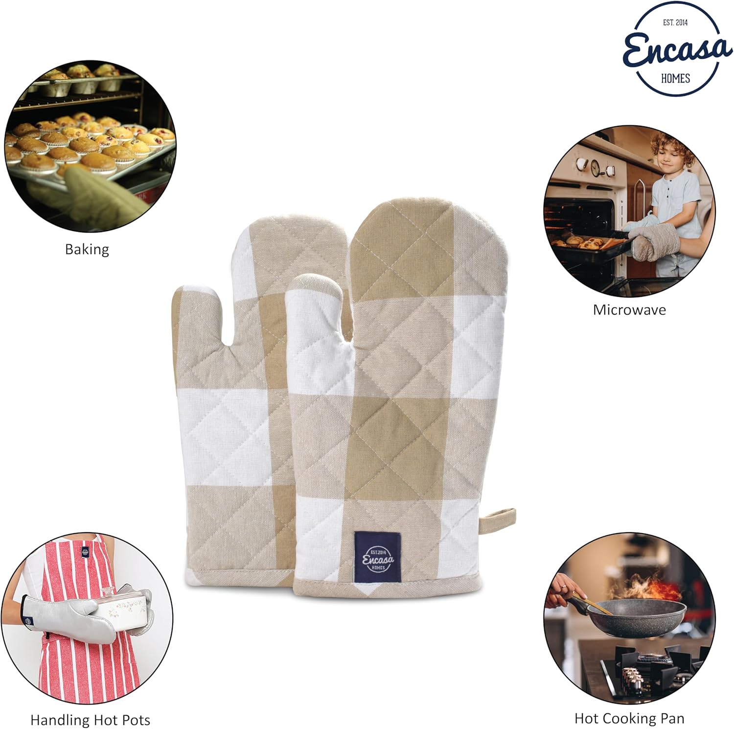 Encasa XO Long 12"x7" Oven Microwave Hand Gloves Mitts (2 pc Set) for Kitchen Cooking & Baking - Heat Resistant, Thick & Safe, Protection of Hands from Hot Utensils - Buffalo Beige Checks