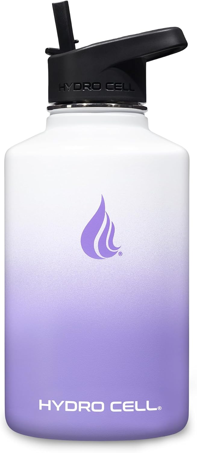 HYDRO CELL Stainless Steel Insulated Water Bottle with Straw - For Cold & Hot Drinks - Metal Vacuum Flask with Screw Cap and Modern Leakproof Sport Thermos for Adults (Lavender/White 64oz)