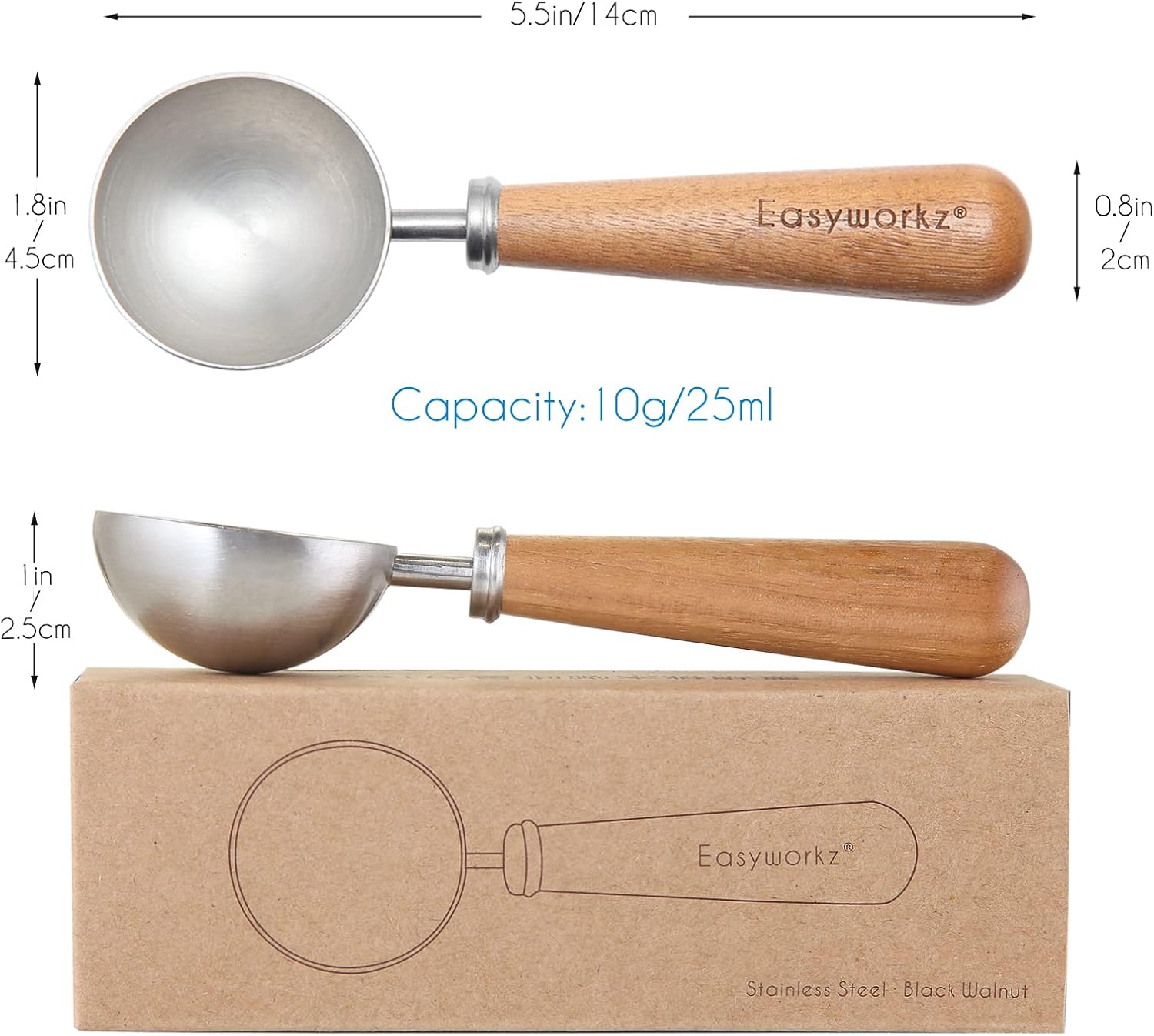 Easyworkz Retro Stainless Steel Coffee Spoon With Black Walnut Handle,10g - Measuring Spoon