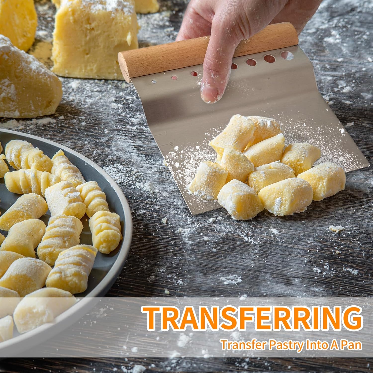 - Multipurpose:The bench scraper is a perfect companion for household. This versatile tool is not only designed to scrape dough effortlessly but can also be used as a kitchen scraper, baking scraper, dough knife, cake scrapper.Or used as a smoother,chocolate coating spatula for cake decorating or batter spreader. It's perfect to your kitchen essentials.