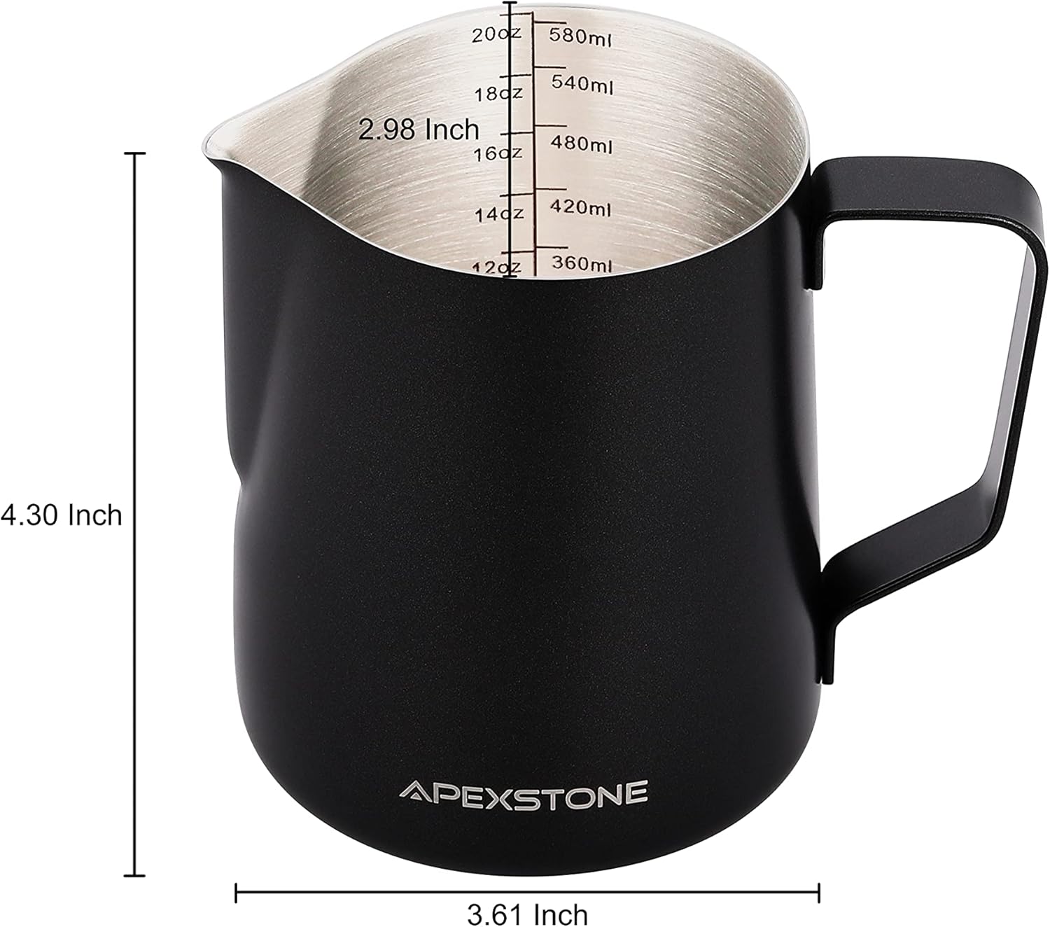 Apexstone 20 oz Black Espresso Steaming Pitcher, Espresso Milk Frothing Pitcher 20 oz Black, Coffee Milk Frothing Cup, Coffee Steaming Pitcher 20 oz/600 ml