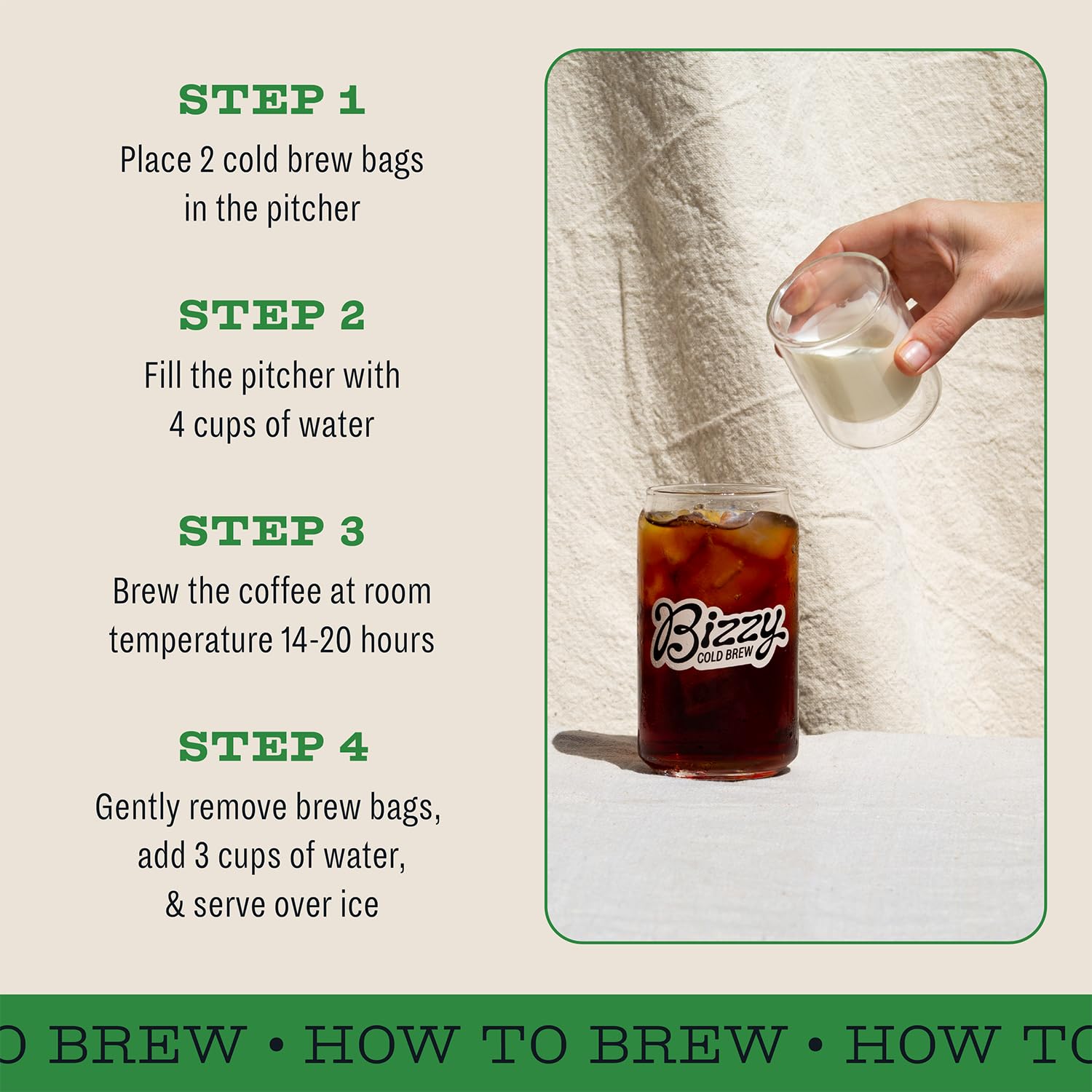 Bizzy Organic Cold Brew Coffee | Espresso Blend | Coarse Ground Coffee | Medium-Dark Roast | Micro Sifted | Specialty Grade | 100% Arabica | Brew Bags | 4 Count | Makes 14 Cups