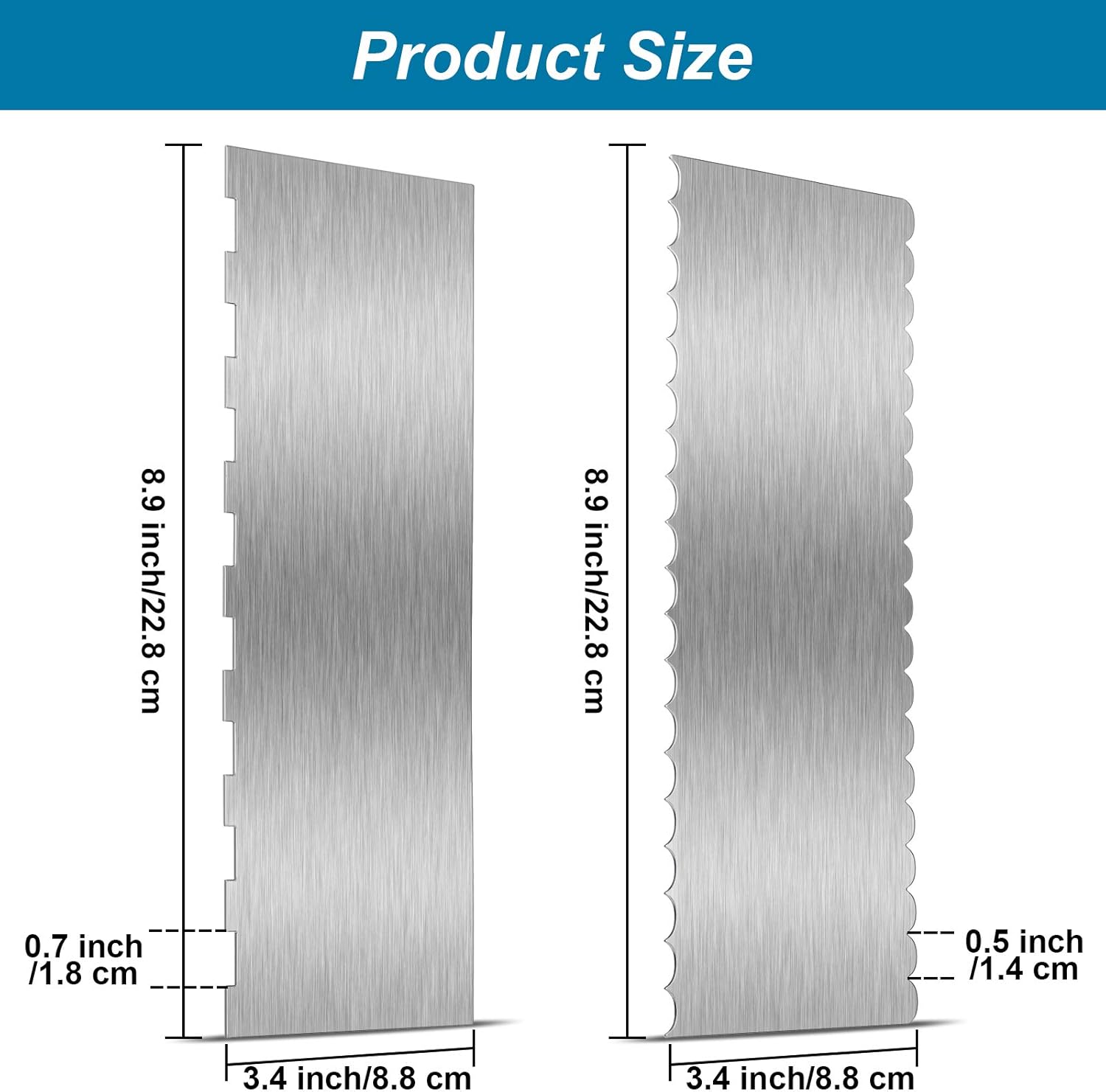 2 Pieces Stainless Steel Cake Scraper Large Double Sided Patterned Edge Stripe Edge Smoother Scraper Cake Decorating Comb Pastry Cutter for Mousse Butter Cream Decoration(9 x 3.4 Inches)