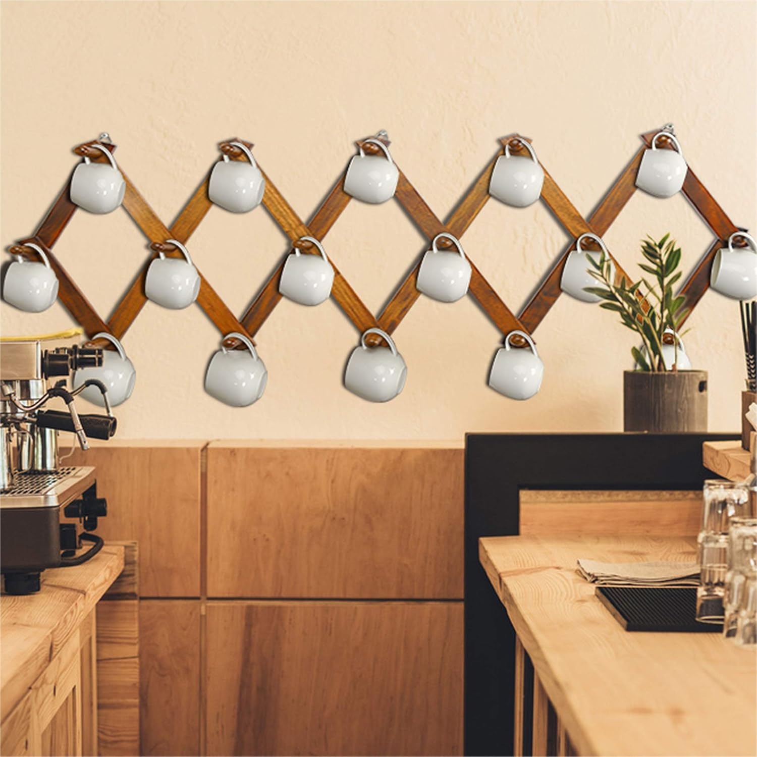 - 【ENDURING:】Made of higher-cost solid beech wood, much thicker and sturdier accordian wall hanger.