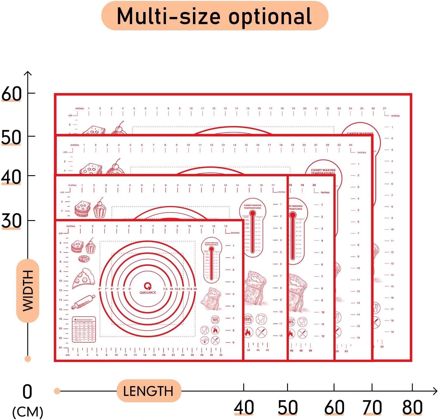 - PERFECT LARGE SIZE: 24*32 inch silicone baking mat turns any flat surface into a baker's work station, The thickness of the pastry mat is only 0.4mm, so it rolls up small to take up little space in the drawer, don't take up space in the kitchen and helps reduce the mess and cleanup.