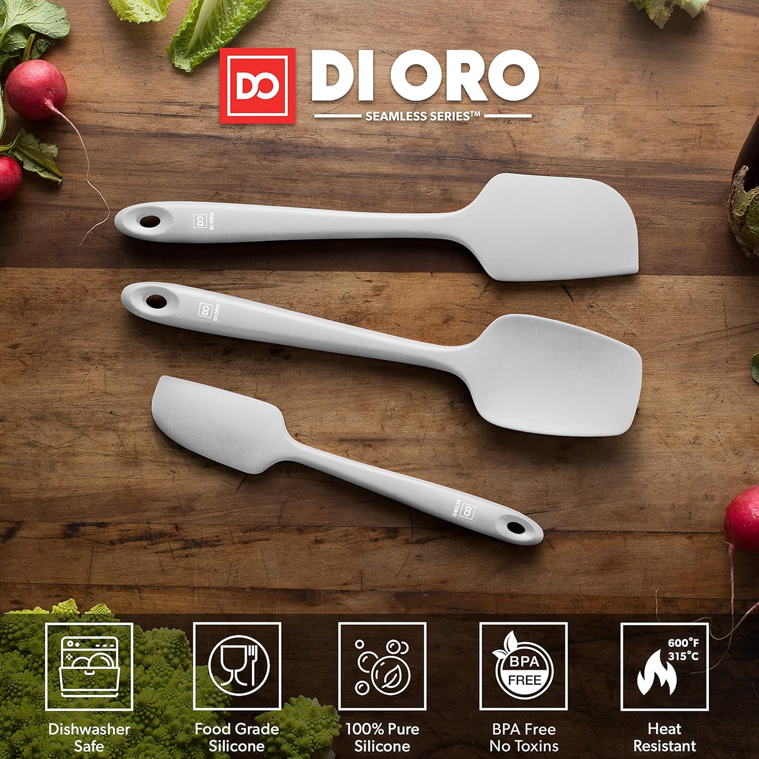 - CLEANS EASY, SANITARY DESIGN – You will be happy to know that your Award-Winning DI ORO Seamless Series Spatulas are dishwasher safe or can be quickly and effortlessly cleaned by hand. The one-piece seamless silicone design prevents buildup of food and grime, which allows for safe and healthy cooking.