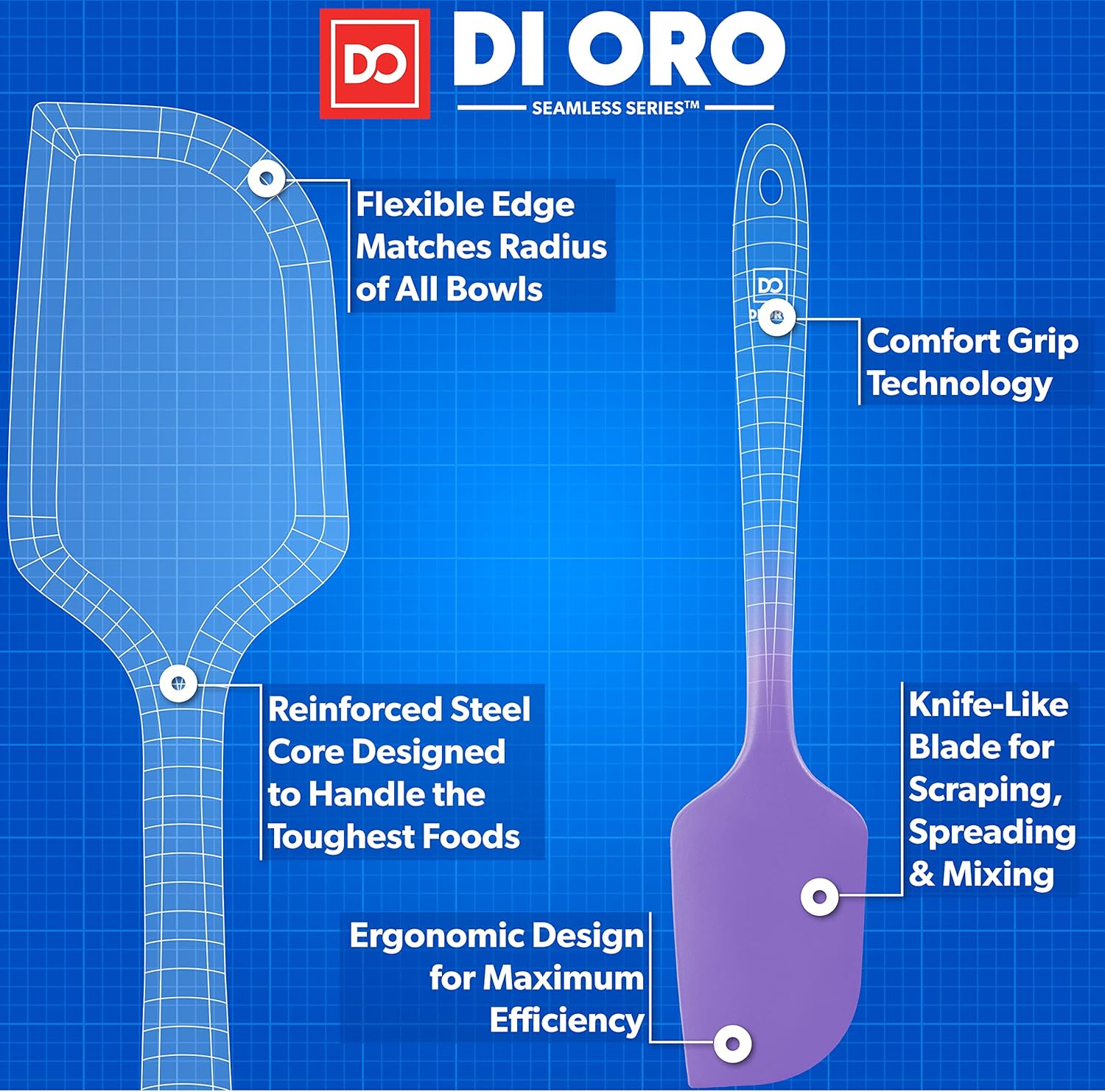 DI ORO Silicone Spatula - 600°F Heat-Resistant Rubber Kitchen Spatula for Baking, Scraping, & Mixing - BPA Free Nonstick Cookware Safe Flexible Utensil for Cooking - Dishwasher Safe (Lavender)