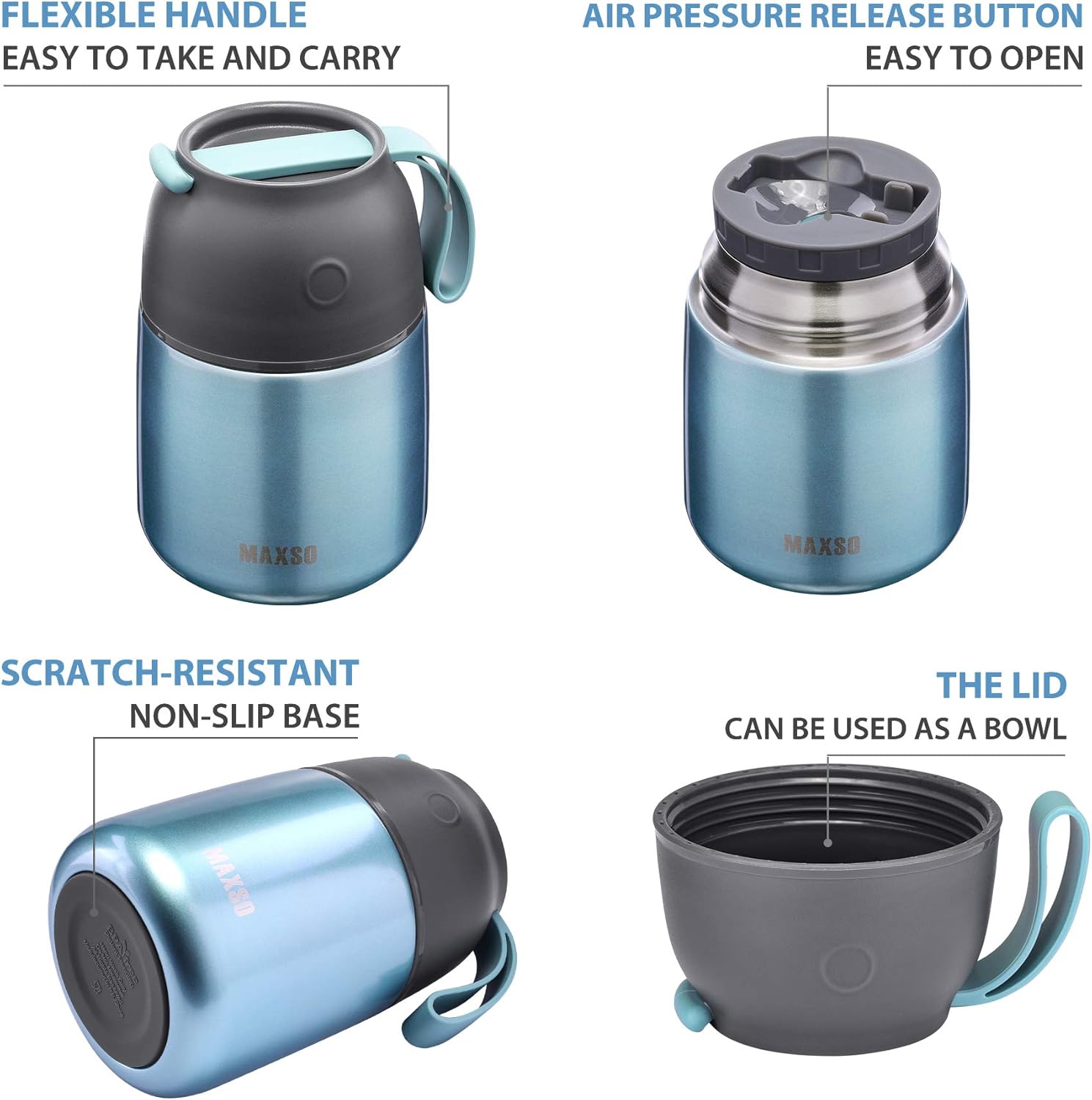 - 【100% Leak-Proof】Airtight, easy to open and generous capacity. Take this Insulated food jar, your storage jars won’t leak in your lunch bag anymore!
