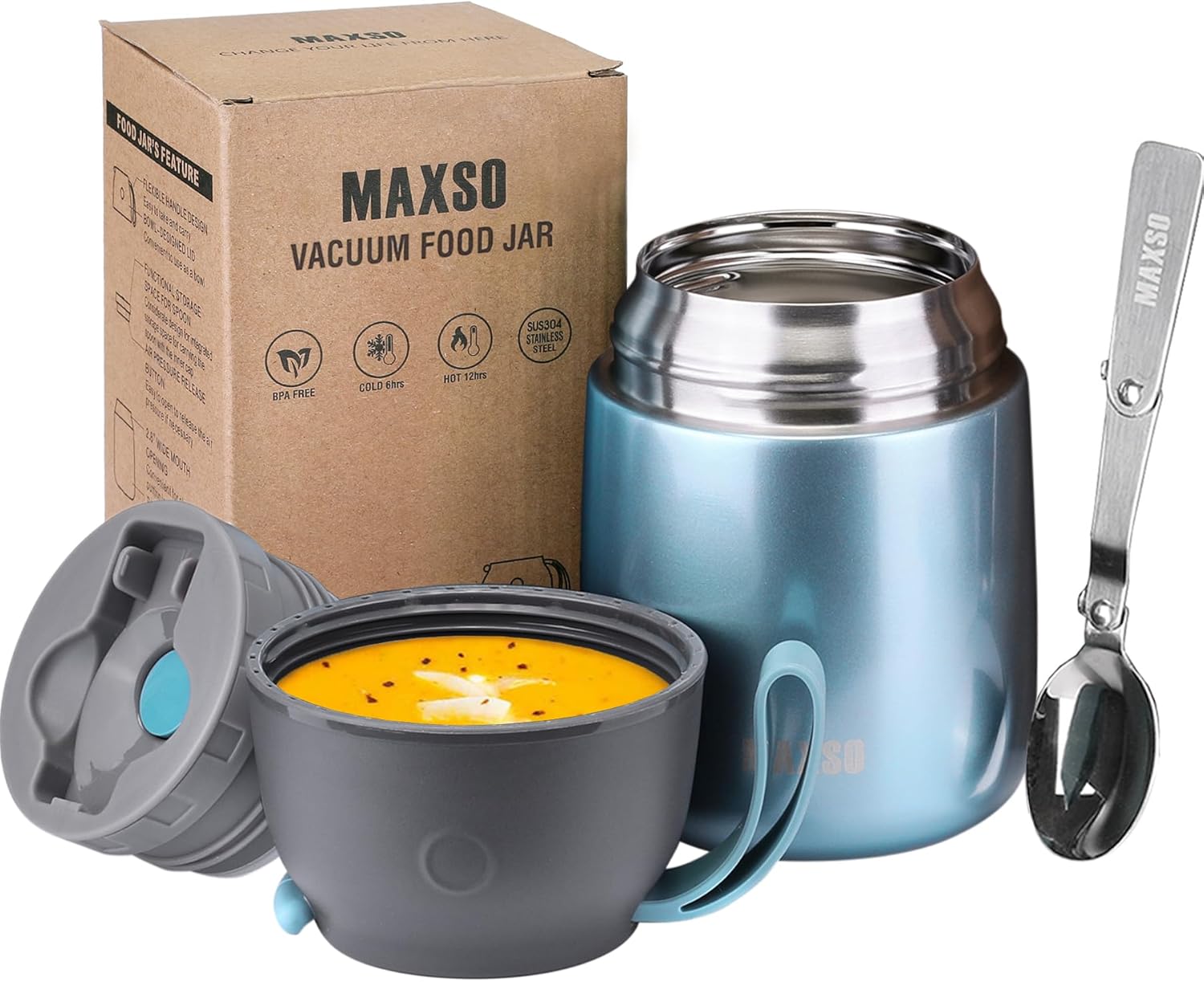 - 【Attractive Insulated Food Jar】It takes top marks for its superior insulation, stainless steel material, Use your Insulated food containers for hot foods & cold foods such as pasta, soup, chili or milkshake.