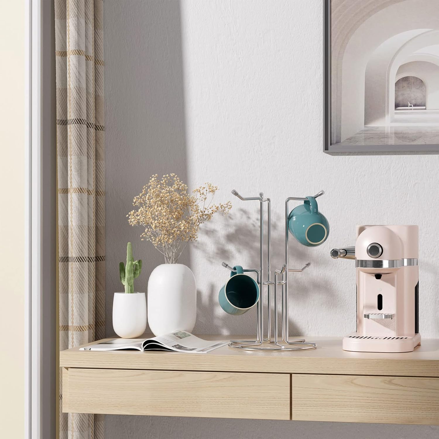 HULISEN Coffee Mug Holder for Countetop, Cup Tree for Counter Large Mugs with 6 Hooks, Metal Cup Holder Stand, Standing Rack Display for Coffee Bar, Silver