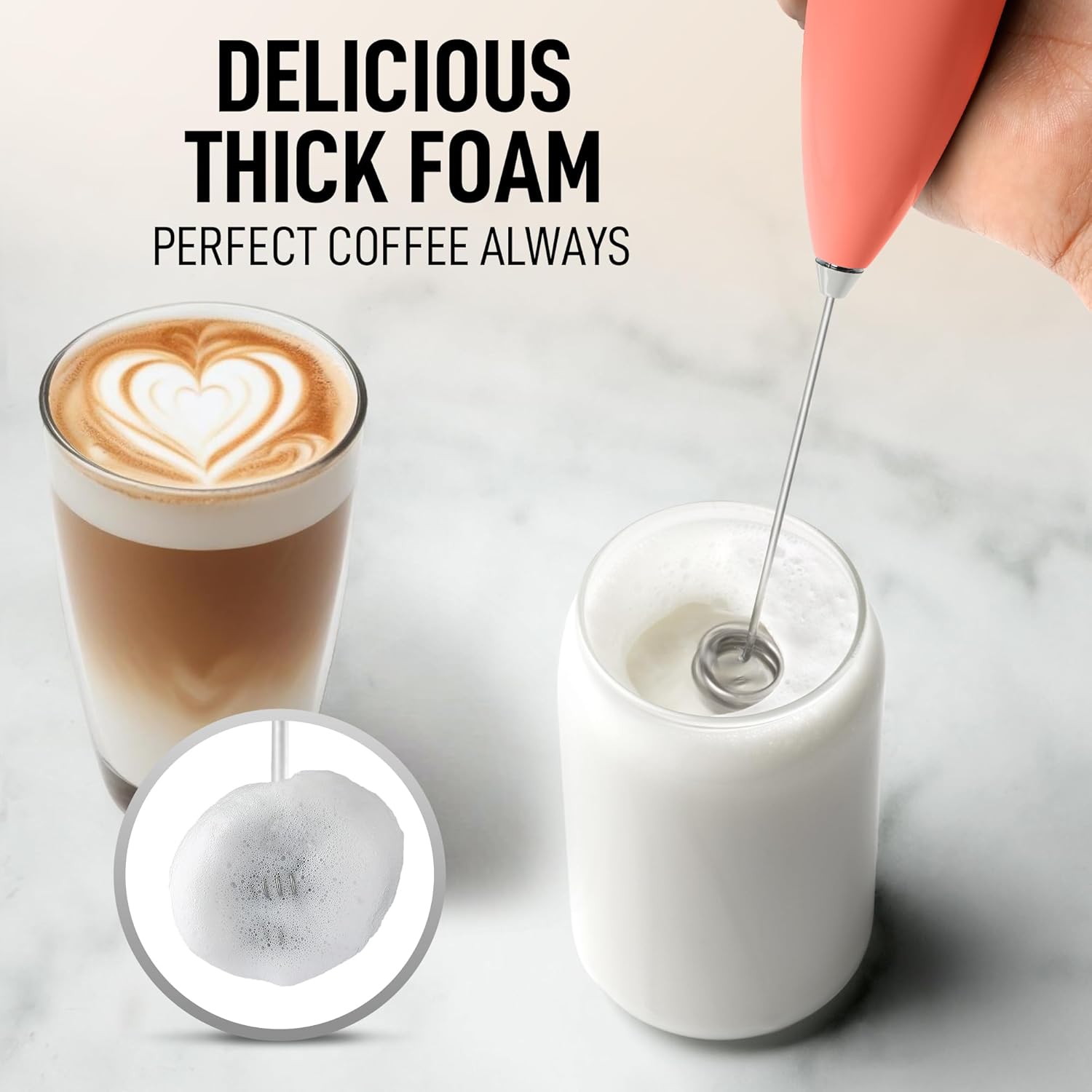 - MAKE RICH, CREAMY FROTH IN SECONDS: Create café-quality foam for coffee, lattes, cappuccinos, hot chocolate, and matcha with this handheld frother wand. Perfect for milk, cream, or non-dairy alternatives.