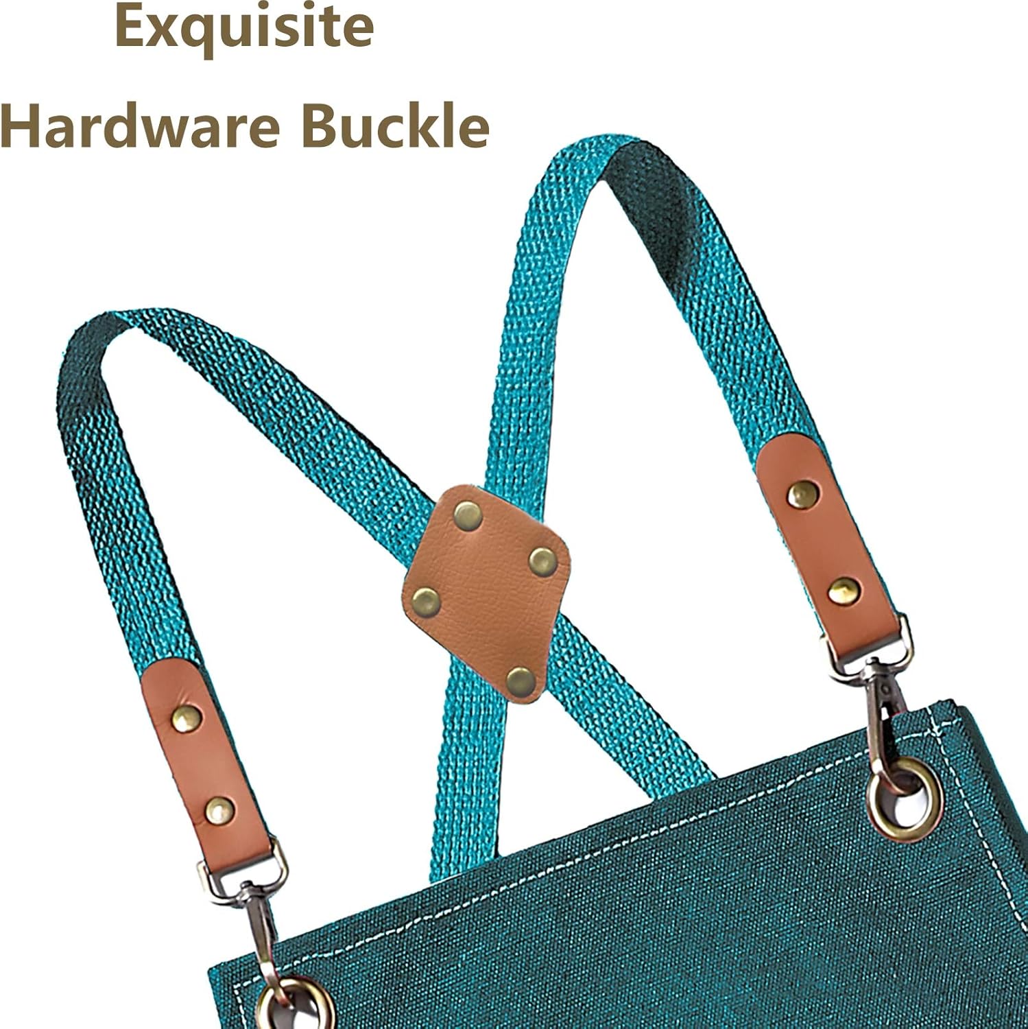 - Apron handcrafted from 100% soft cotton, no smell, Exquisite hardware buckle. Pocket corners are reinforced with metal rivets, durable