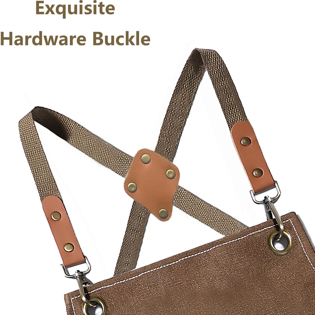 - Apron handcrafted from 100% soft cotton, no smell, Exquisite hardware buckle. Pocket corners are reinforced with metal rivets, durable