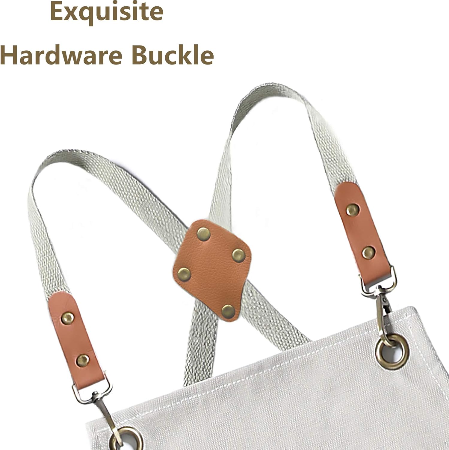 - Apron handcrafted from 100% soft cotton, no smell, environment protection. Exquisite hardware buckle. Pocket corners are reinforced with metal rivets, durable