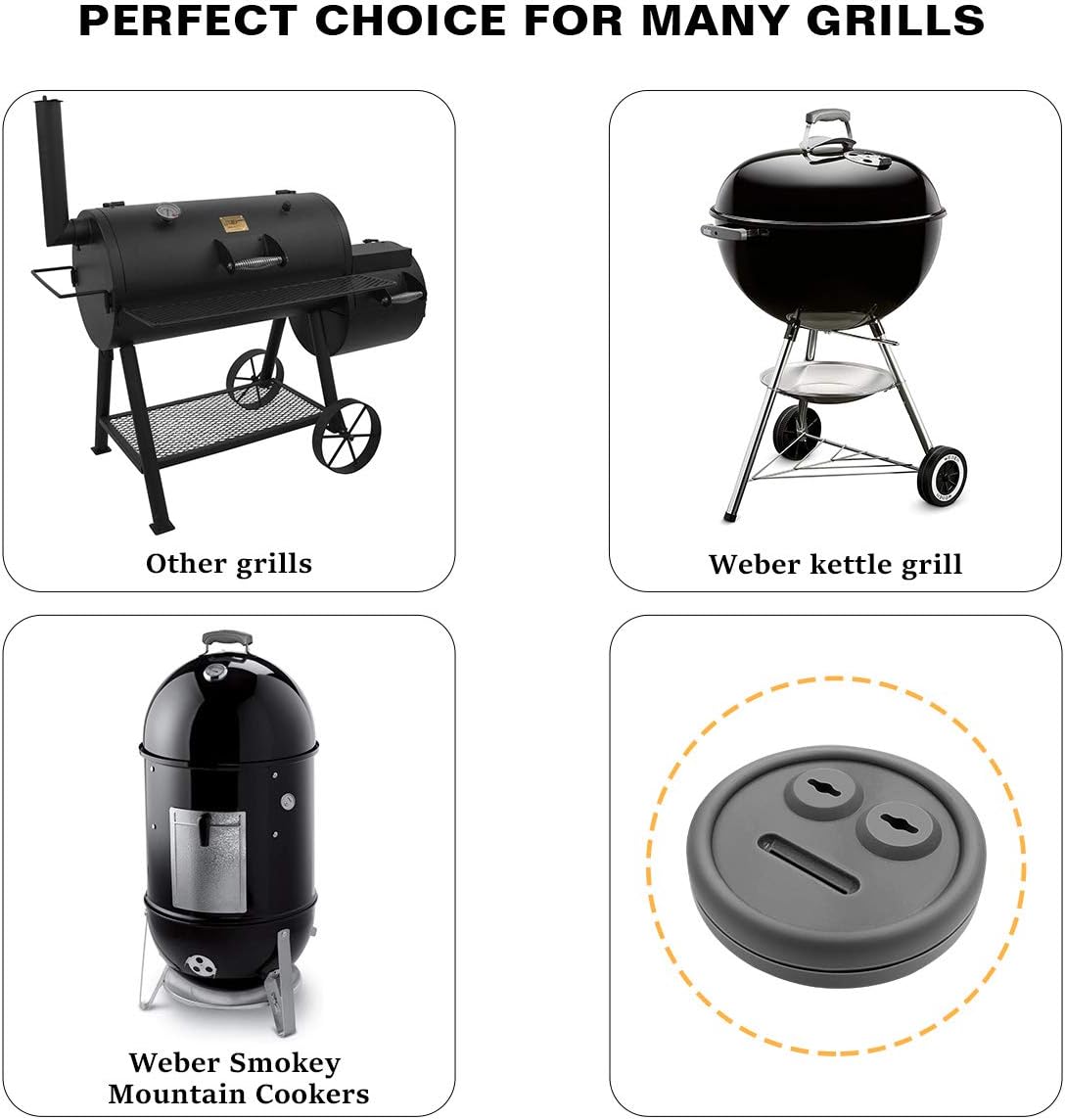 - PERFECT CHOICE FOR MANY GRILLS: Very suitable for replacment port for Weber Smokey Mountain Cookers, with no drilling required (14", 18" and 22"). Grommet size: Overall diameter 1.65", Hole diameter 1.25", Thickness 0.35"