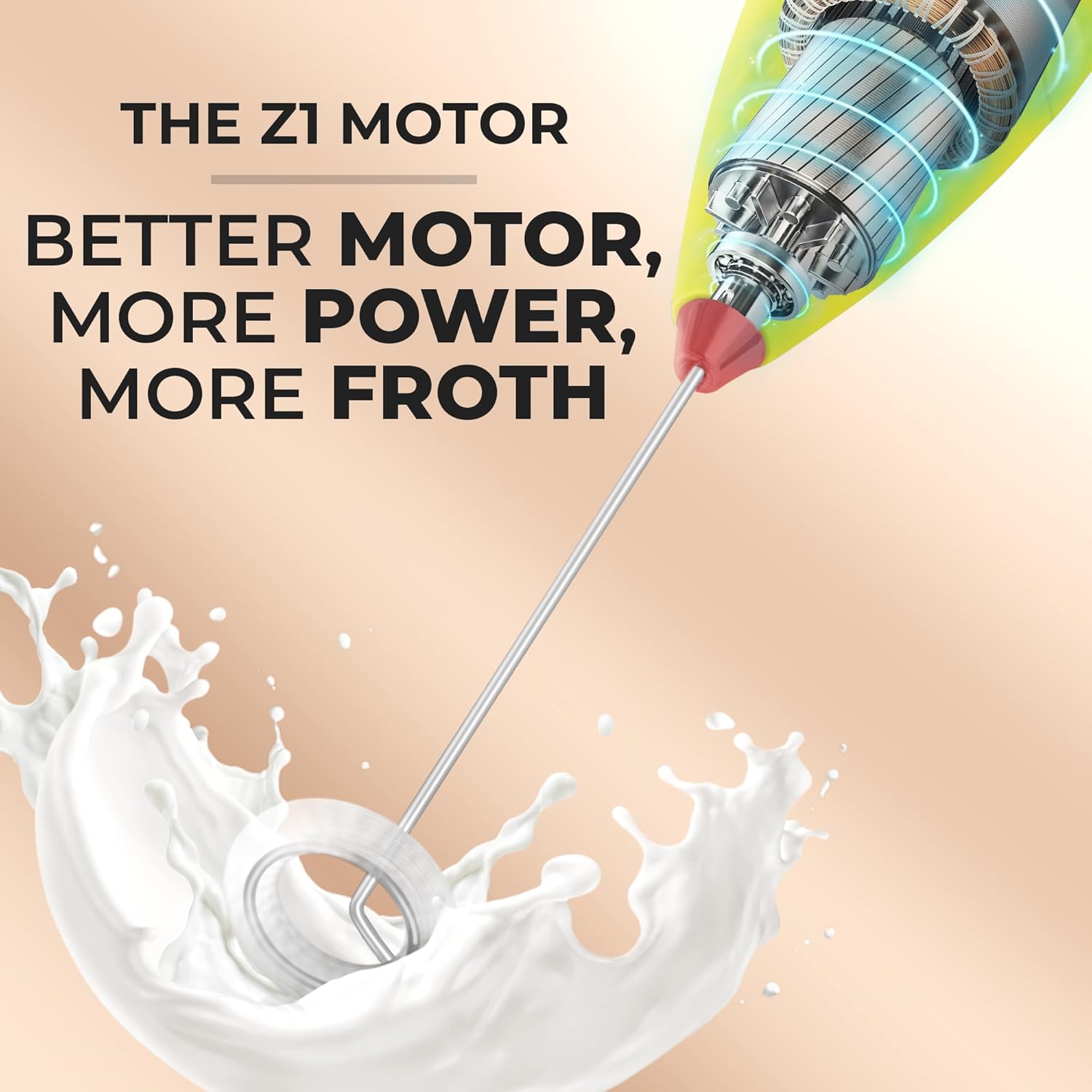 Zulay Kitchen Powerful Milk Frother Wand - Ultra Fast Handheld Drink Mixer - Electric Whisk Foam Maker for Coffee, Lattes, Cappuccino, Matcha & Creamer - Lime N Red