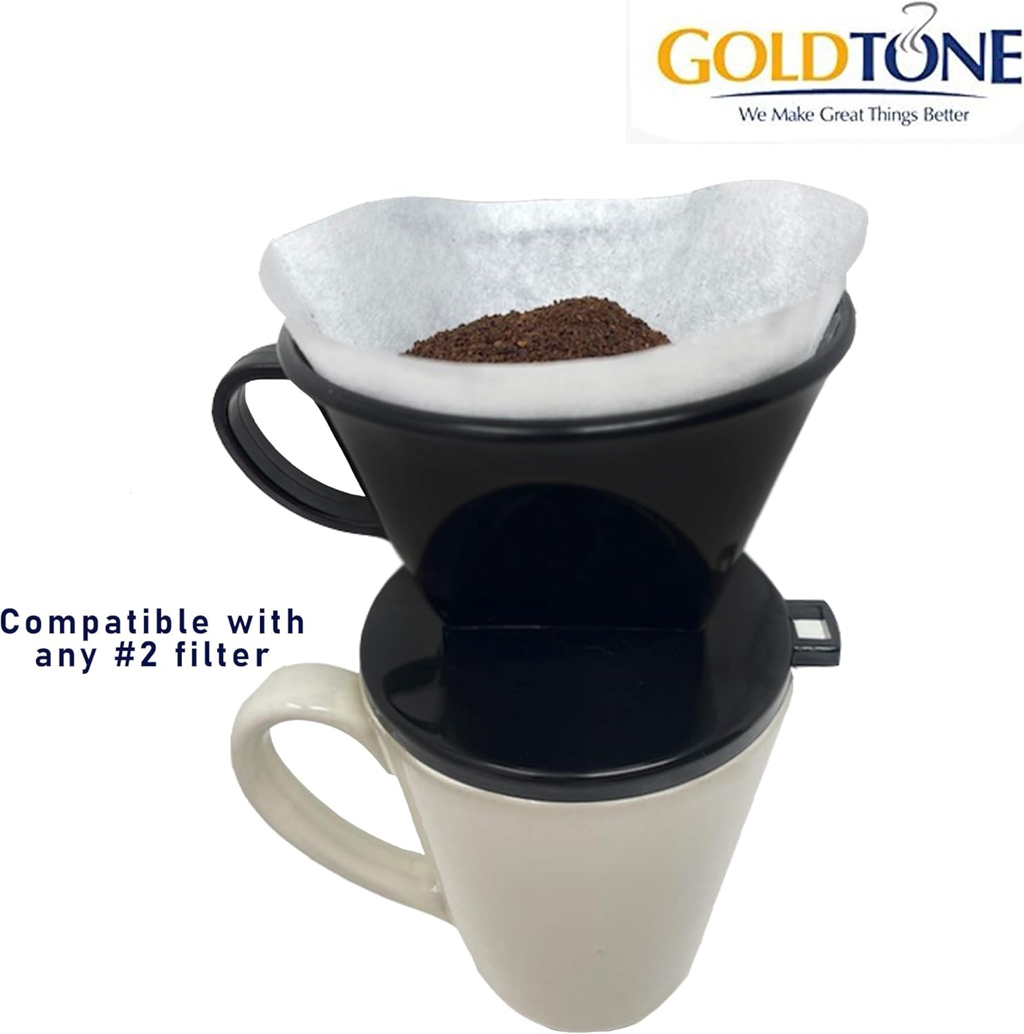 GoldTone #2 Cone Style Pour Over Coffee Dripper, Portable Pour Over Coffee Filter BPA-Free (1-6 Cups) And Scoop