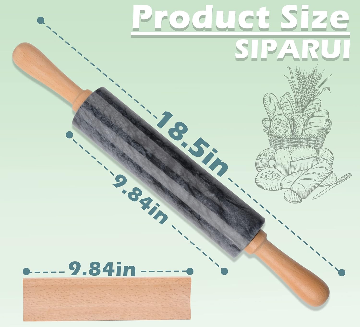 - Large Enough Size: 9.84-Inch long barrelx2.36-Inch diameter.18.5-Inch total length with handles.9.84-Inchx1.77-Inch wooden base(Protect and secure the rolling pin).Weighs close to 4.5 pounds,make your rolling easier.