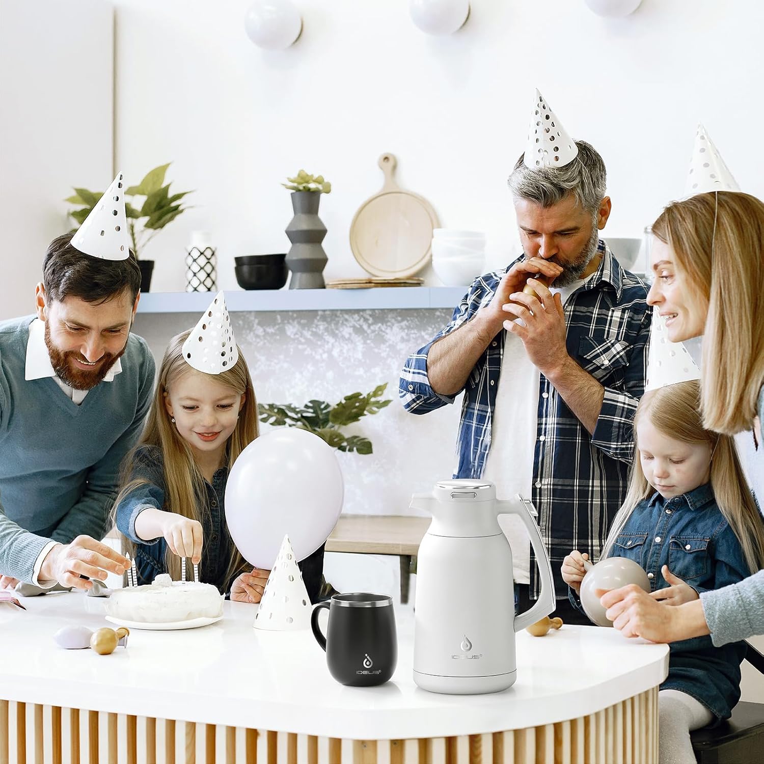 - Unique Exterior - Designed by professional designers, these coffee carafes have a unique and elegant appearance which combines noble and modern elements.Double-wall stainless steel vacuum insulation allows for maximum temperature retention.