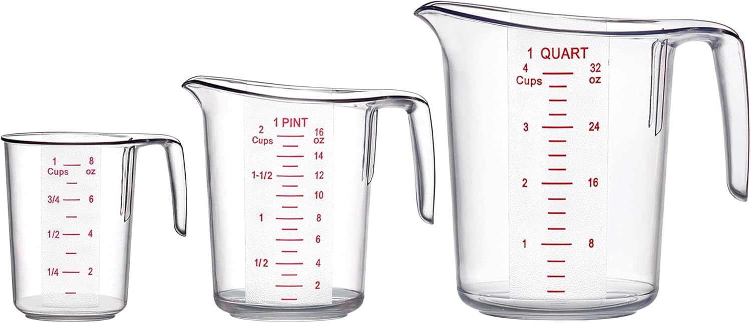 - [MULTIPLE SIZES] The set includes 3 measuring cups of various capacities: 1 cup (8 oz, 250 ml), 2 cups (16 oz, 500 ml), 4 cups (32 oz, 1000 ml).