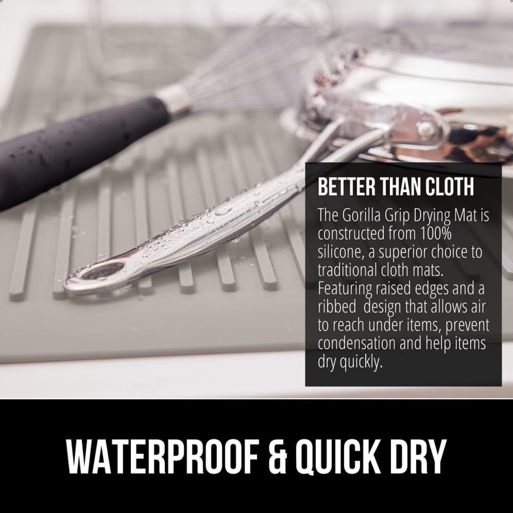 GORILLA GRIP 100% BPA-Free Patented Silicone Dish Drying Mat for Kitchen Counter, 18x24 Inch, Water Catching Ribbed Design, Easy Clean Waterproof Sink Liner, Heat Resistant, Fits Under Rack, Almond