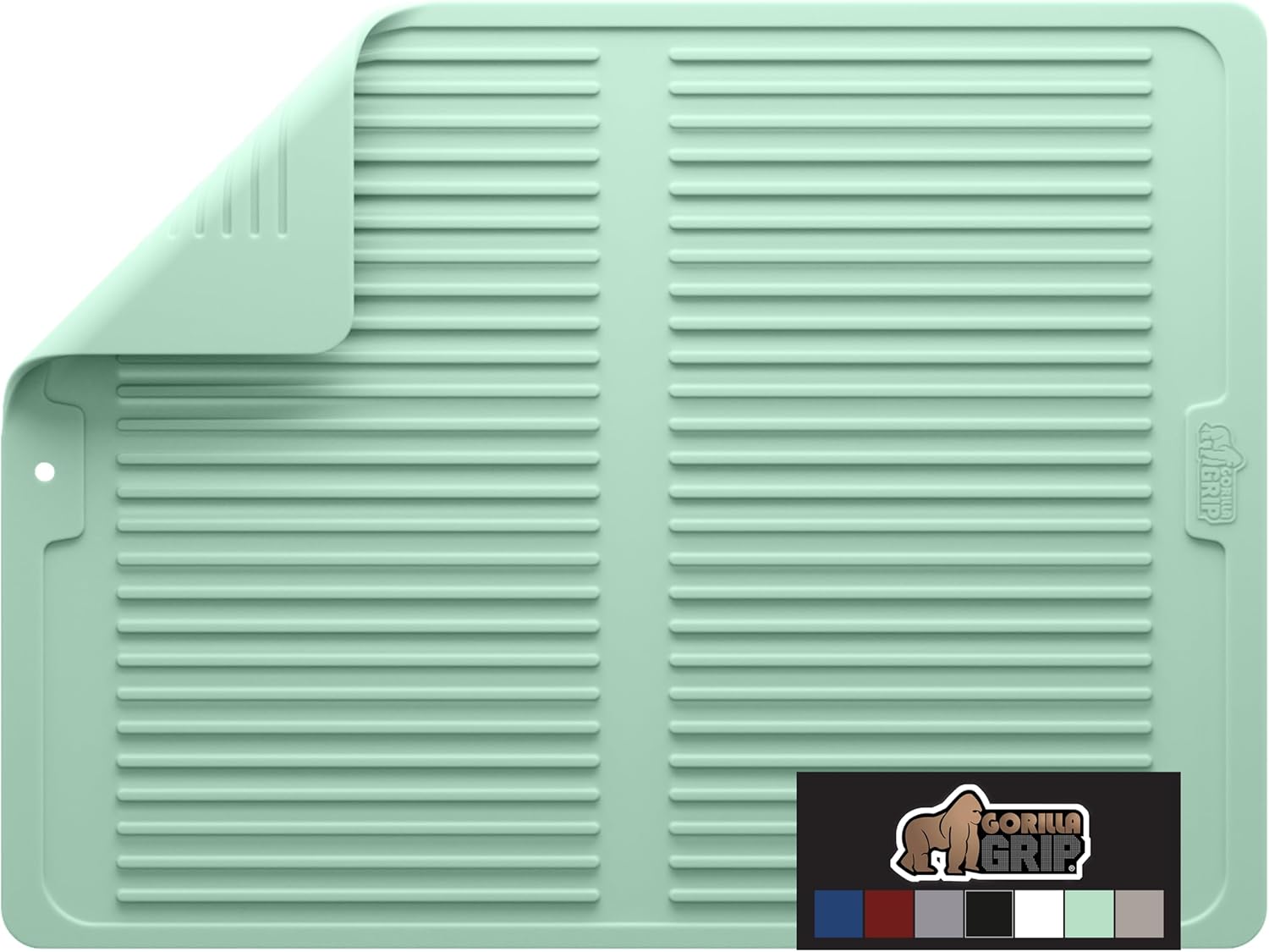 GORILLA GRIP 100% BPA-Free Patented Silicone Dish Drying Mat for Kitchen Counter, 18x24 Inch, Water Catching Ribbed Design, Easy Clean Waterproof Sink Liner, Heat Resistant, Fits Under Rack, Mint