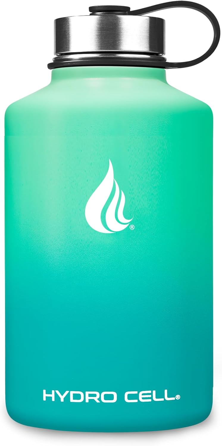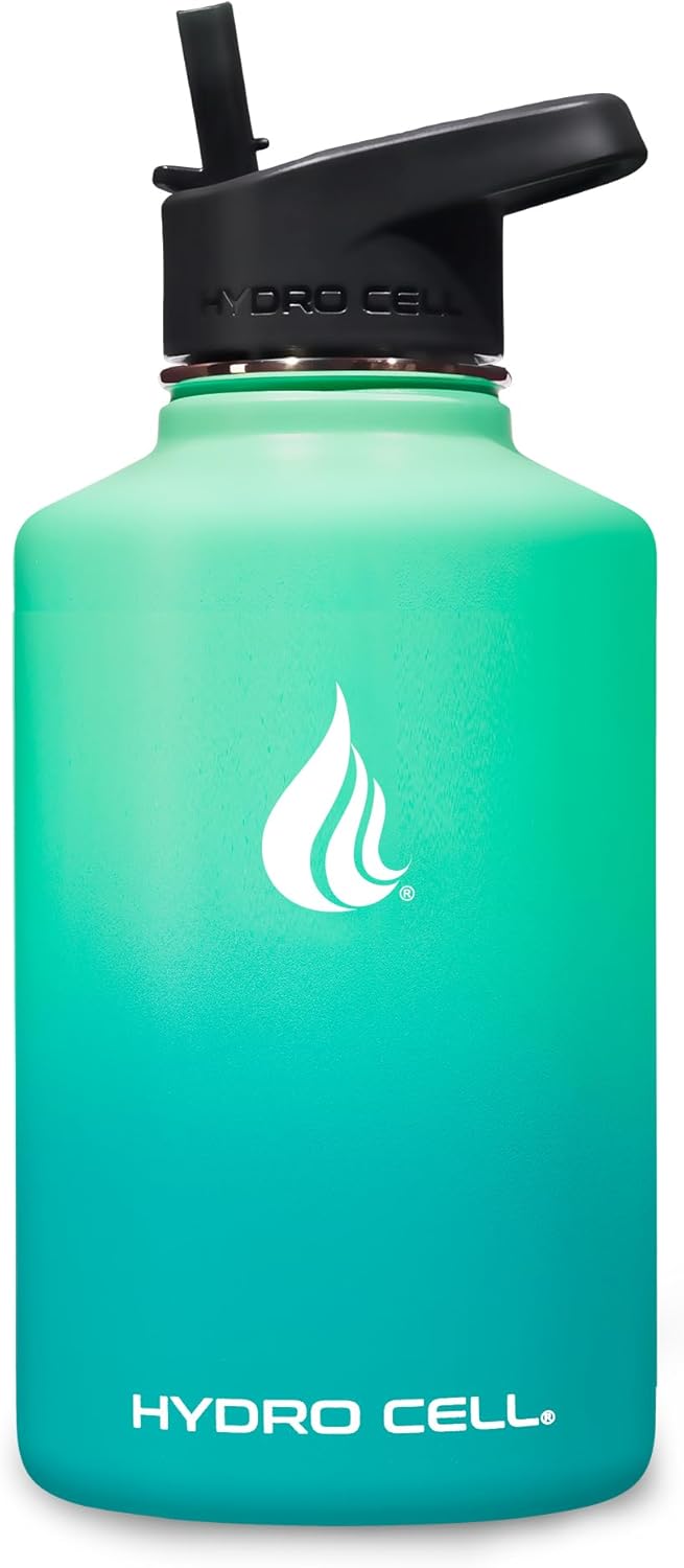 HYDRO CELL Stainless Steel Insulated Water Bottle with Straw - For Cold & Hot Drinks - Metal Vacuum Flask with Screw Cap and Modern Leakproof Sport Thermos for Adults (Mint/Green 64oz)