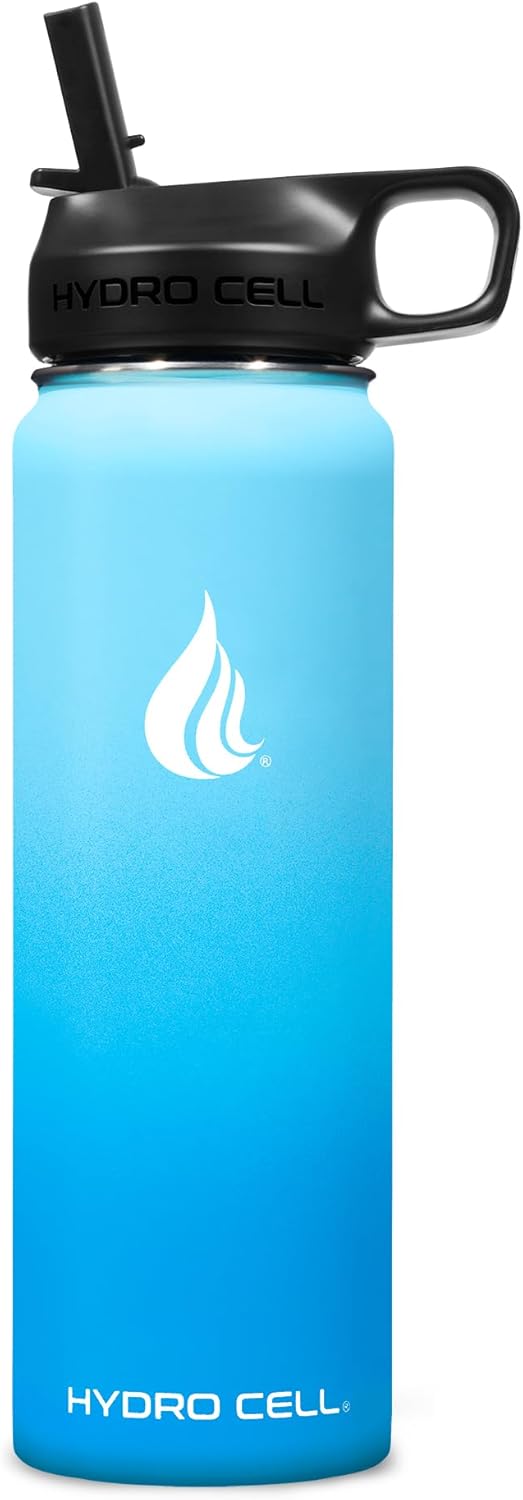 HYDRO CELL Stainless Steel Insulated Water Bottle with Straw - For Cold & Hot Drinks - Metal Vacuum Flask with Screw Cap and Modern Leakproof Sport Thermos for Adults (Sky/Blue 24oz)