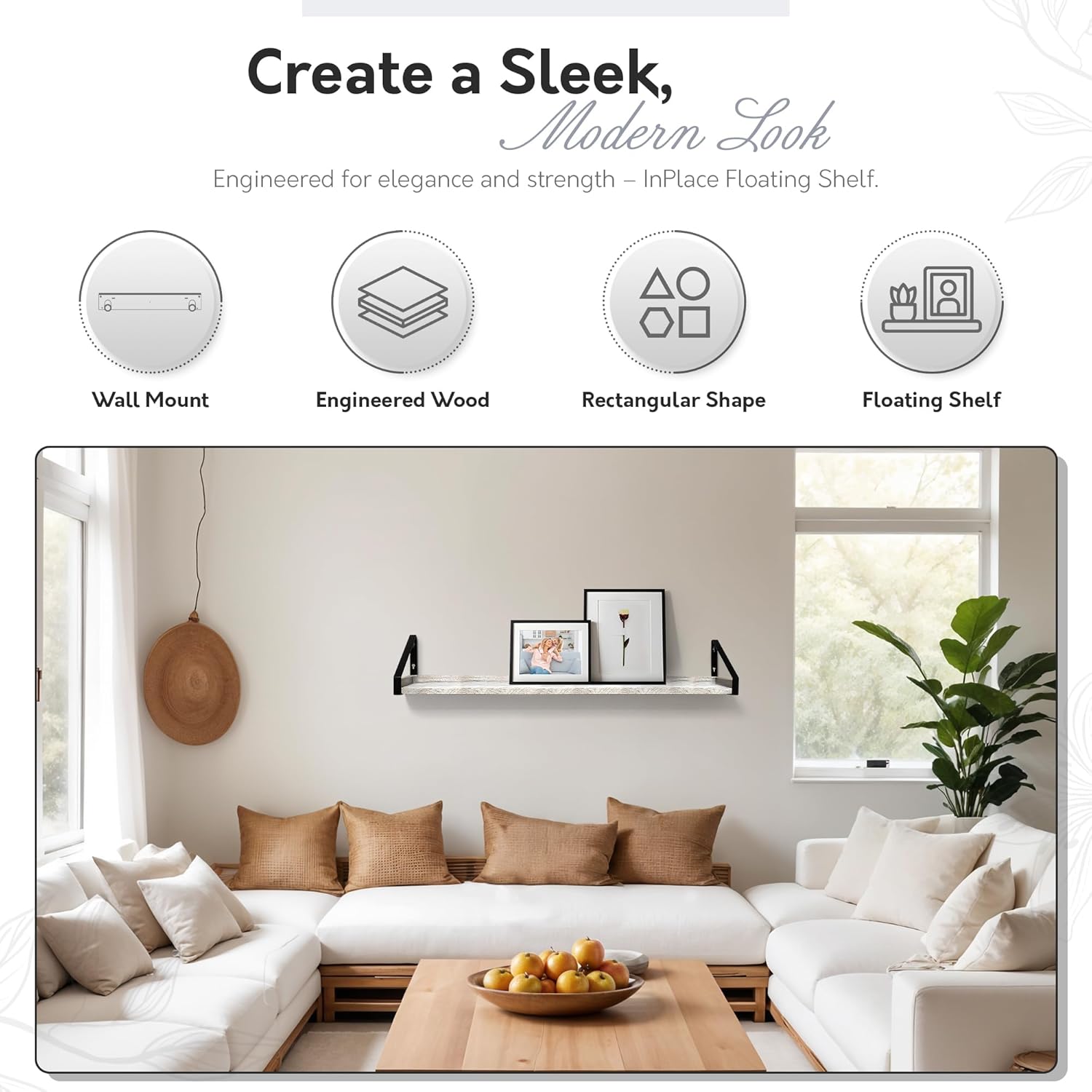 - RUSTIC MEETS MODERN: The industrial brackets and sleek design make this white floating shelf a perfect fit for minimalist, farmhouse, or modern home decor themes.