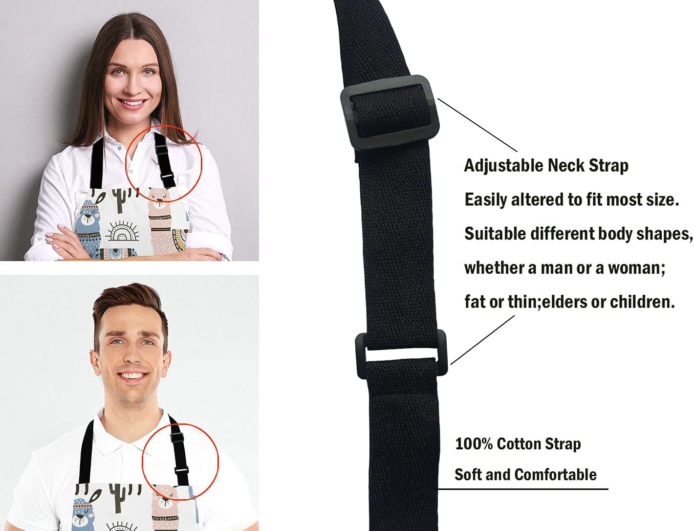 llama Kitchen Cooking BBQ Chef Apron, Cute Animal Alpaca with Cactus Apron for Men, Women - Dad Gifts, Gifts for Men - Birthday, Mothers Day Gifts for Mom, Wife, Husband, Brother, Friends
