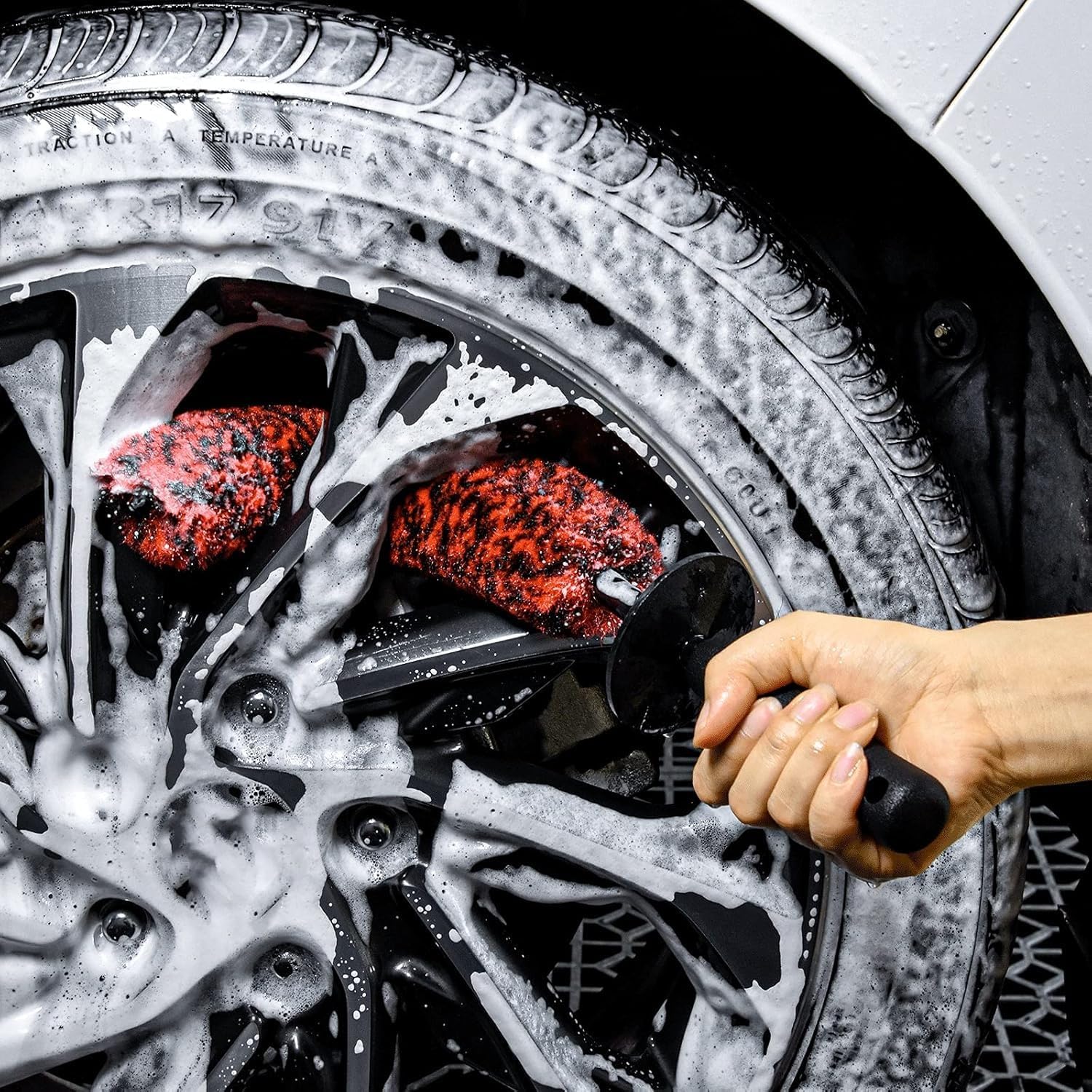 - 【COMFORTABLE GRIP】 Ergonomic, wheel brush handle made of EVA material, more wear-resistant, soft and flexible. Recommended by car collectors and professional detailers.