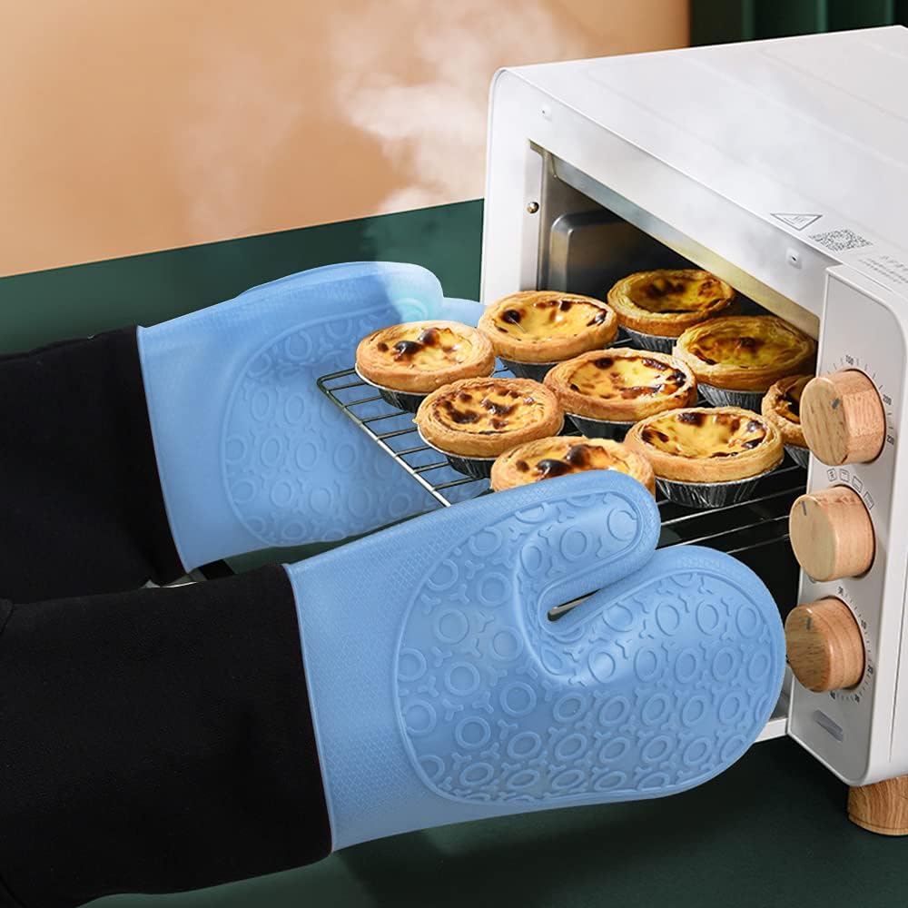 sungwoo Extra Long Silicone Oven Mitts, Heat Resistant Oven Gloves with Quilted Liner Non-Slip Textured Grip Perfect for BBQ, Baking, Cooking and Grilling - 1 Pair 14.6 Inch Sky Blue & Black