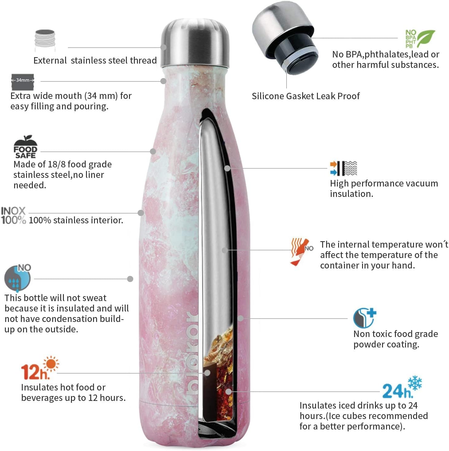 BJPKPK Insulated Water Bottles 17oz Stainless Steel Sports Water Bottles Keep Cold for 24 Hours and Hot for 12 Hours,BPA Free,Marble Blossom