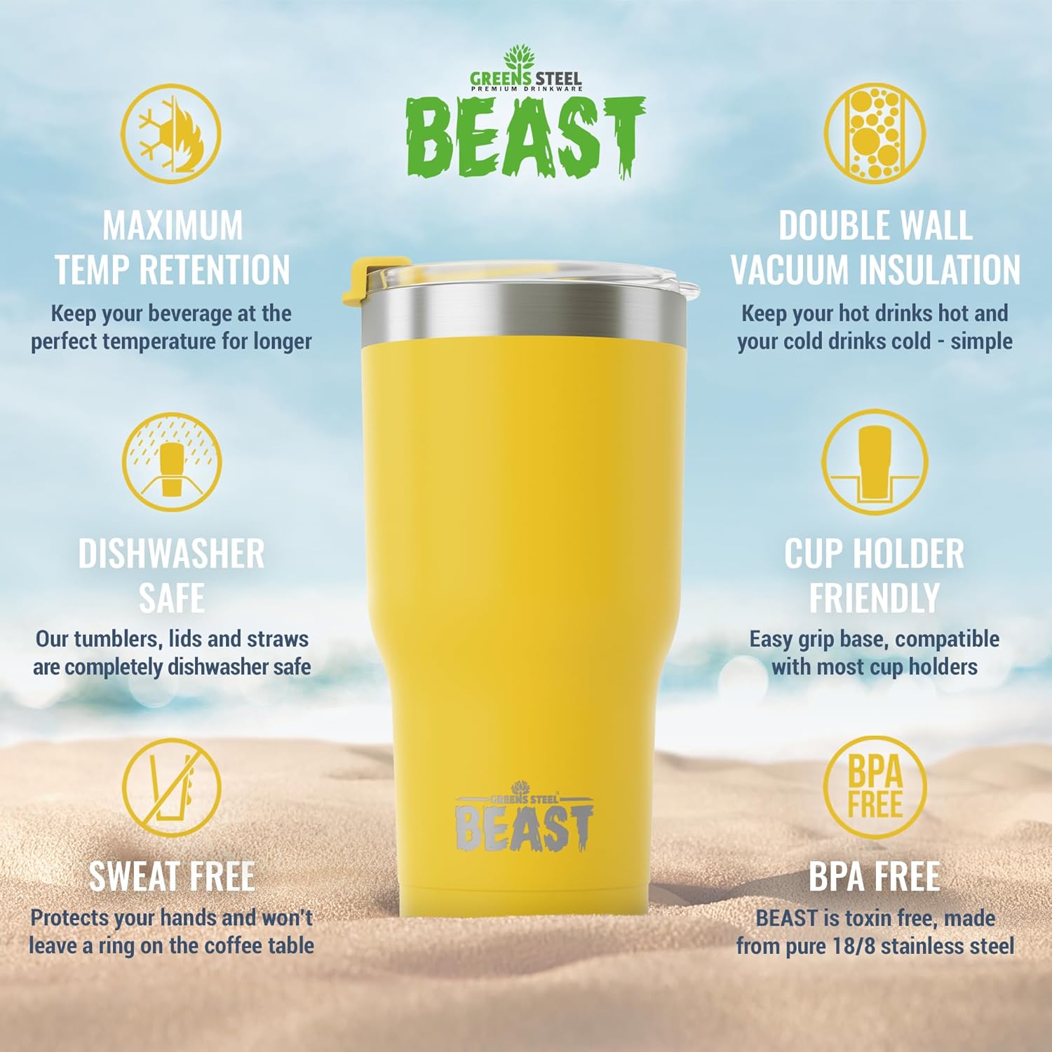 Beast 20 oz Tumbler Stainless Steel Vacuum Insulated Coffee Ice Cup Double Wall Travel Flask (Lemon)