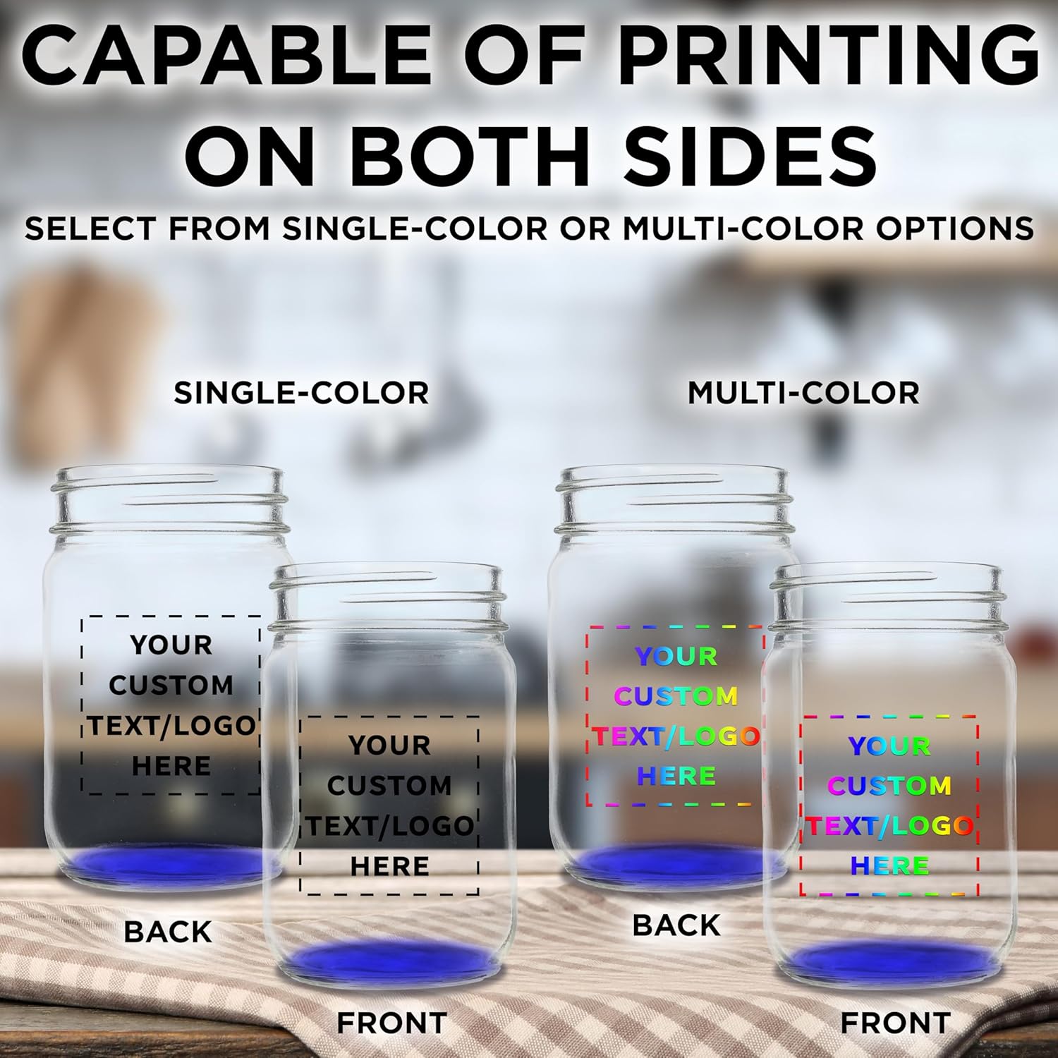 DISCOUNT PROMOS Custom Decorating Mason Jars 12 oz. Set of 50, Personalized Bulk Pack - Glass Jars for Overnight Oats, Candies, Fruits, Pickles, Spices, Beverages - Blue