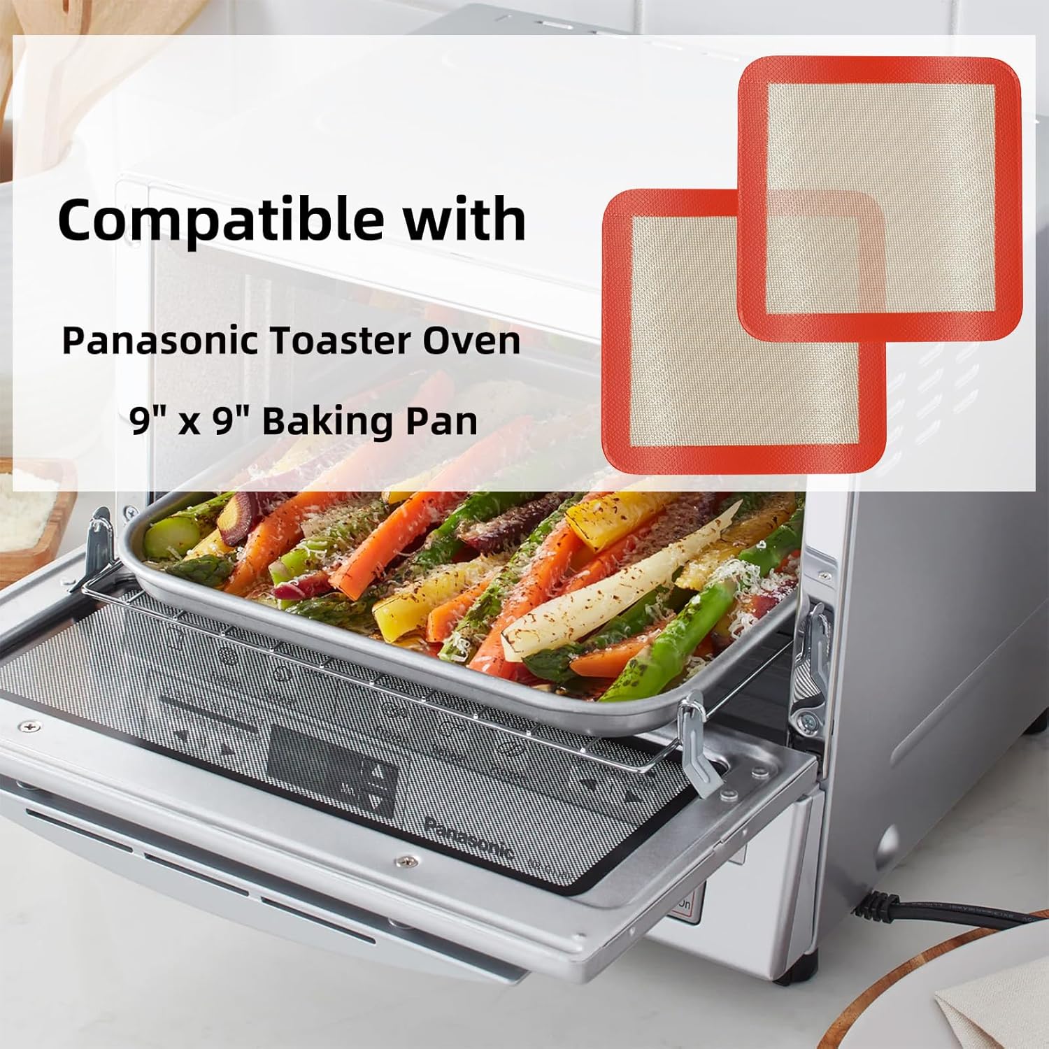 - 【HIGH QUALITY MATERIALS, PREMIUM PERFORMANCE】Made of food grade silicone and fiberglass mesh, these square silicone baking mats fit 8.5 or 9 inch square cake pans, springform pans, bread pans or other baking sheets. And if you like, they can be used alone in the oven or roaster for baking. Non-stick, Nontoxic, BPA free and food safe. ( 8.5 inch x 8.5 inch )
