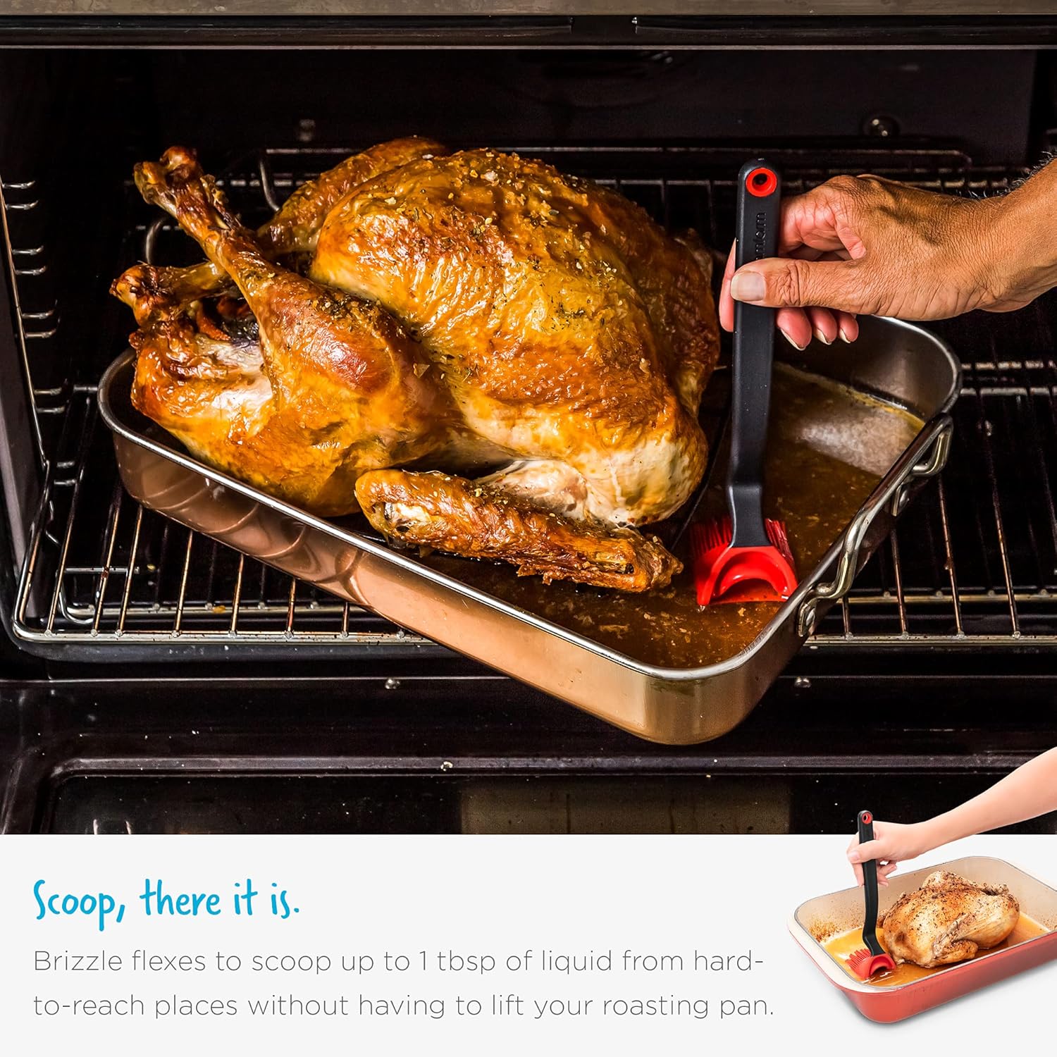 Dreamfarm Brizzle 3-In-1 Flexible Silicone Sit-Up Basting, Drizzle, Scooping Brush with In-Built Sauce Resevoir - Black
