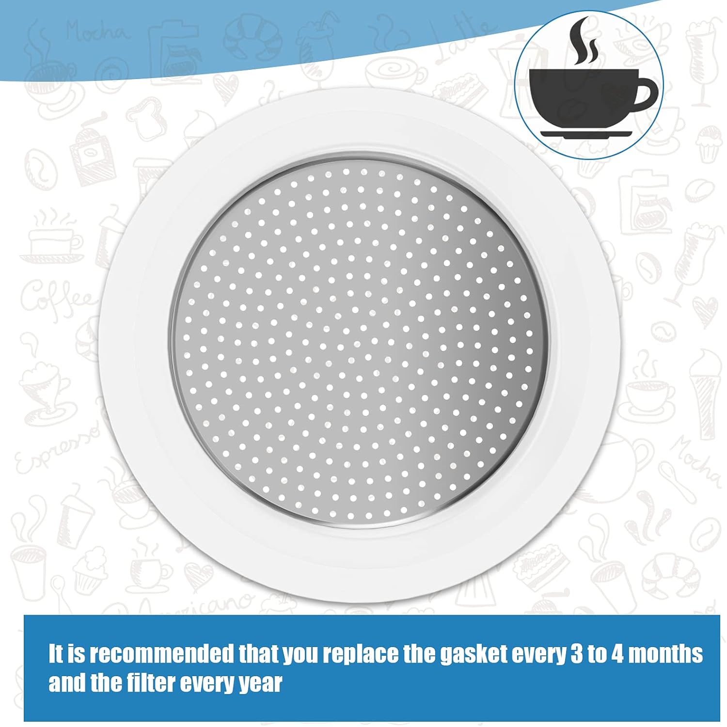 - Wide application: these compatible espresso coffee maker replacement parts can be applied for a wide temperature, and they are practical for you, you won't need to worry that cup is not using due to broken gasket, they are enough for you to replace; It is recommended that you replace the gasket every 3 to 4 months and the filter every year