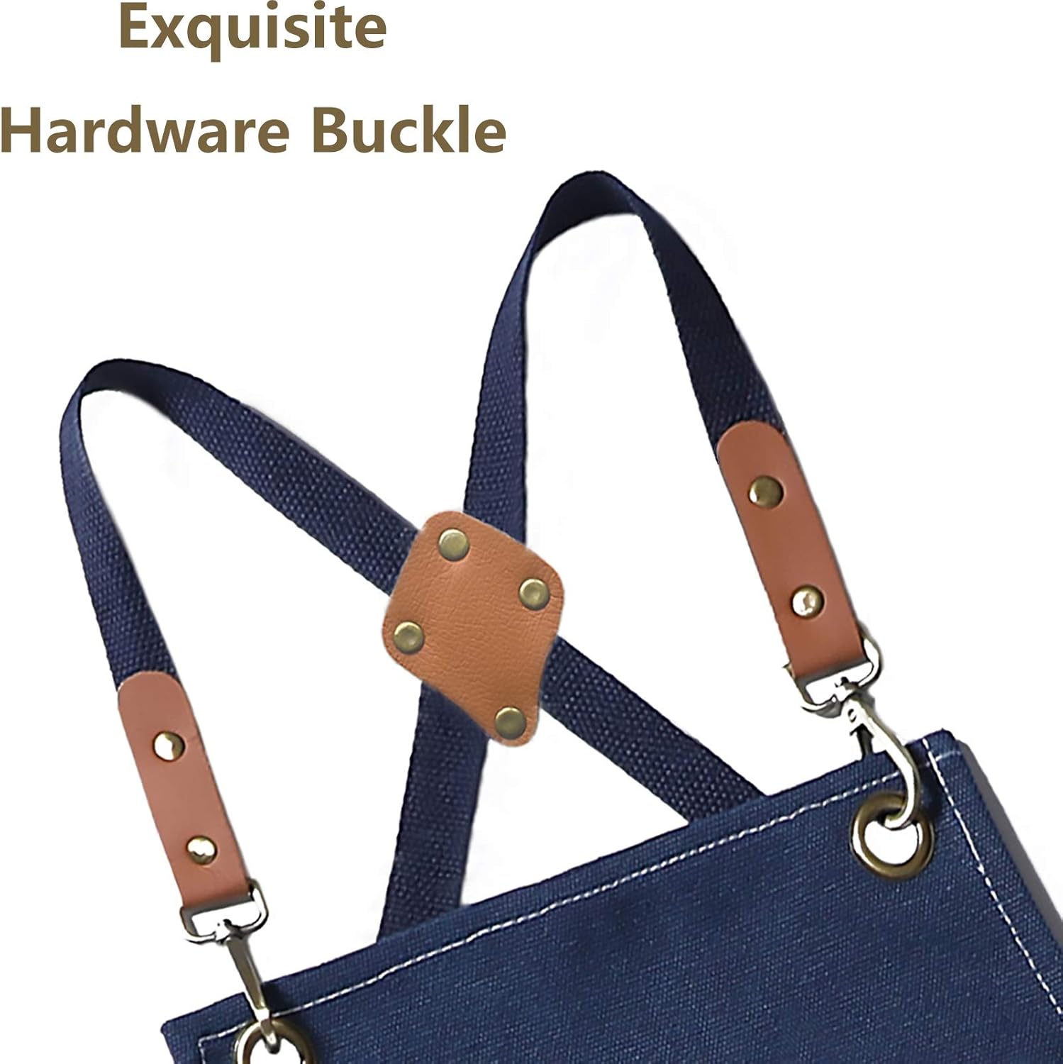 - Apron handcrafted from 100% soft cotton, no smell, Exquisite hardware buckle. Pocket corners are reinforced with metal rivets, durable