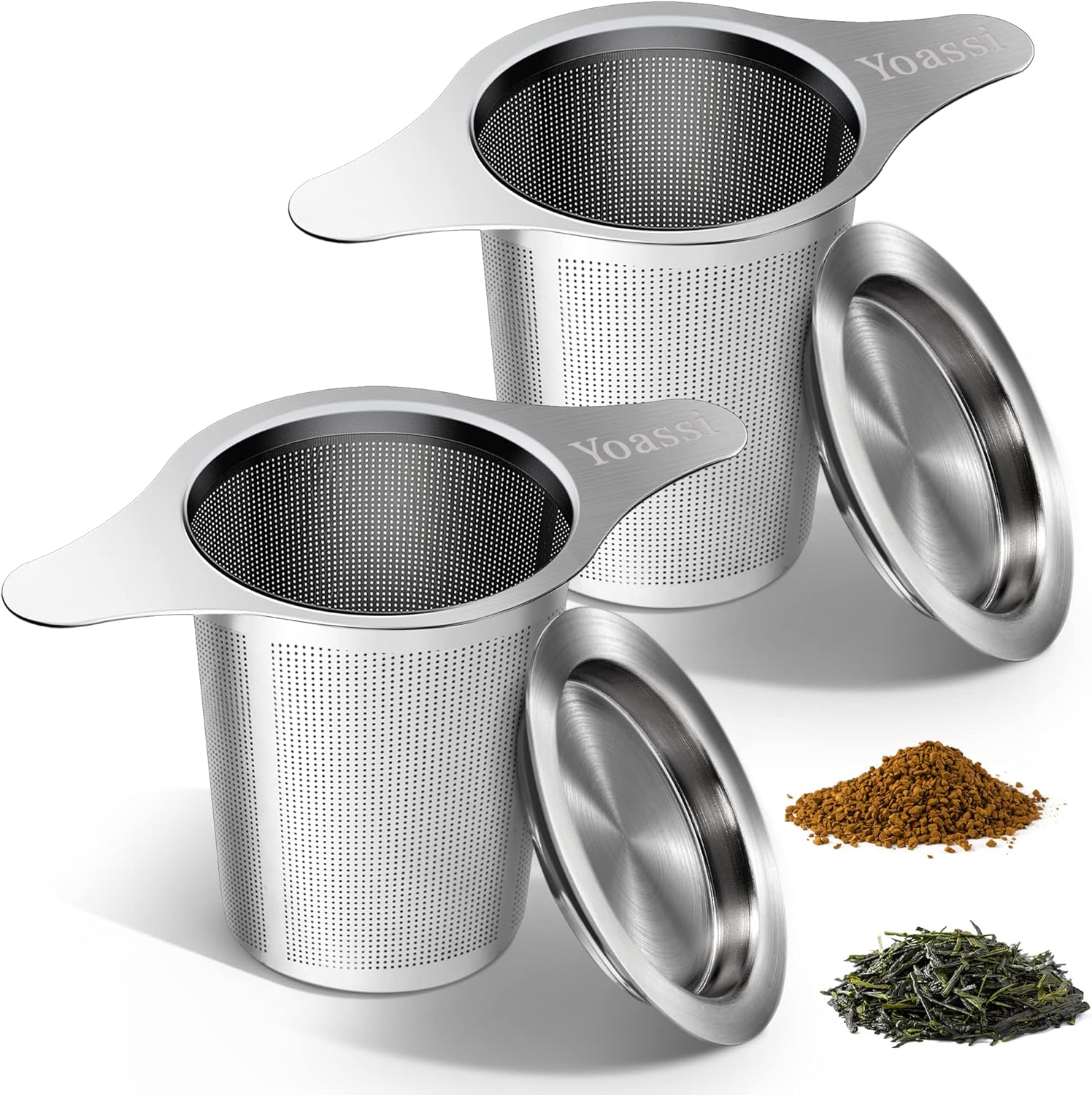Extra Fine 18/8 Stainless Steel Tea Infuser Mesh Strainer with Large Capacity & Perfect Size Double Handles for Hanging on Teapots, Mugs, Cups to Steep Loose Leaf Tea and Coffee (2 Pack)
