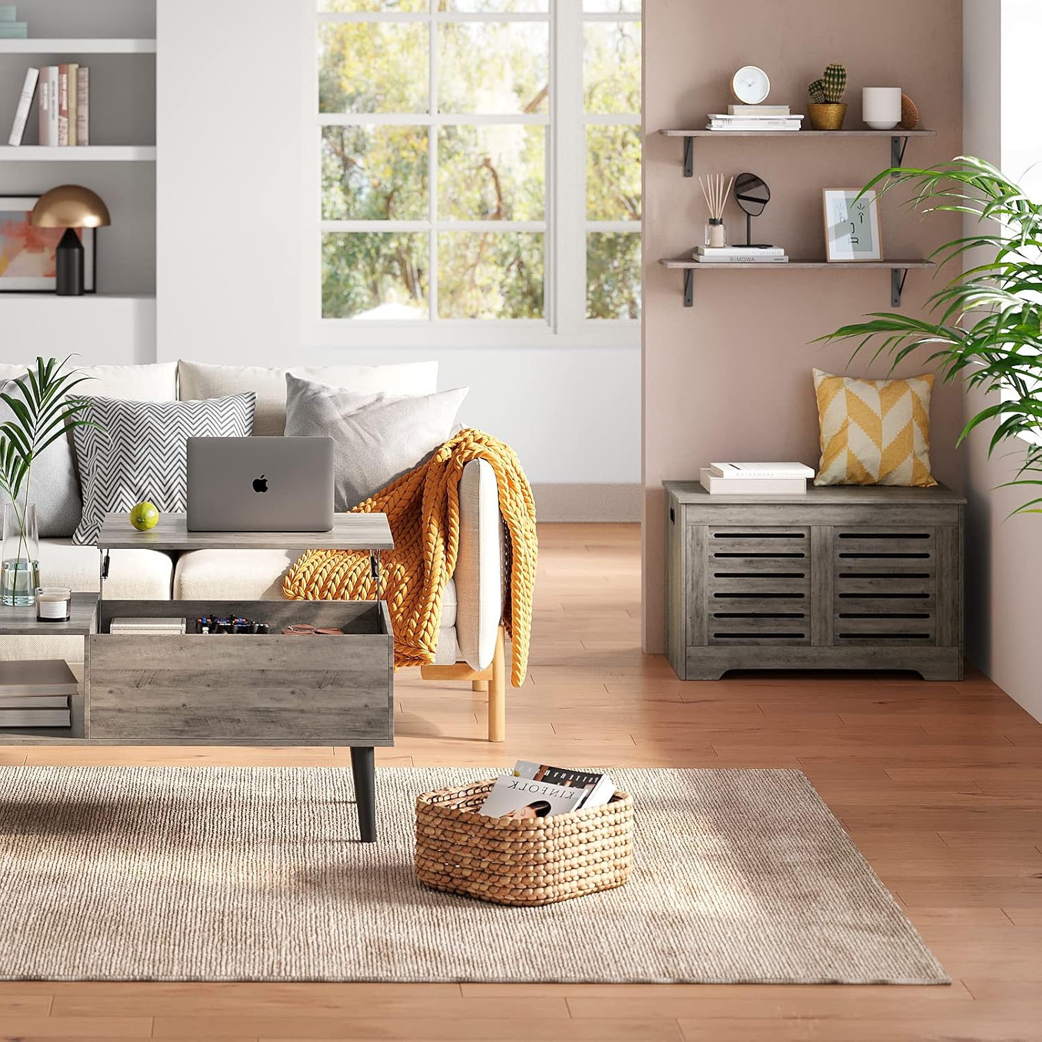 - 【Beautify Your Home】Elegant grey wash color complements tough lines, rusticity wood grain and industrial design add a classic and stylish vibe to your home. A perfect combination of wood and iron, bringing you a cozy life easily by placing some decorations. Matches with any wall perfectly