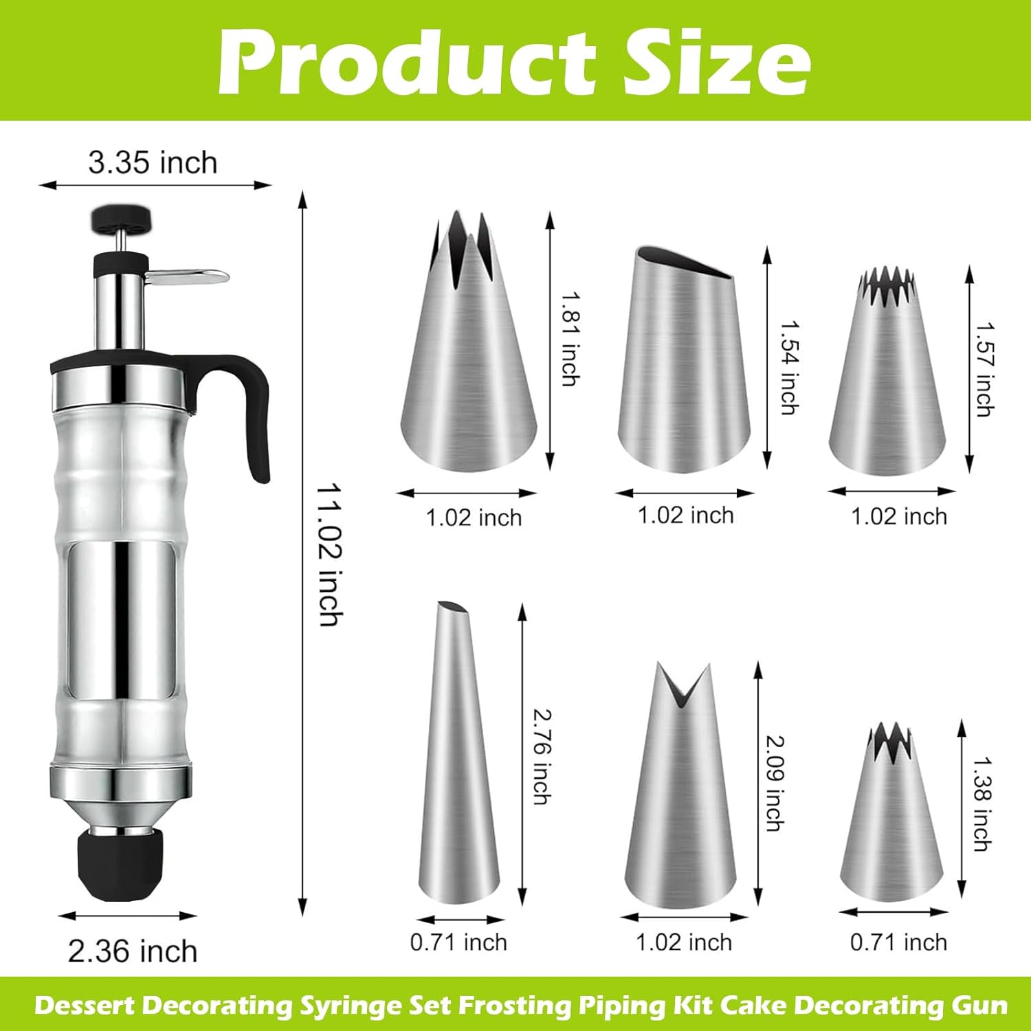 Suuker Dessert Decorating Syringe Set, Frosting Piping Kit Stainless Steels Cake Decorating Tools with 6 Icing Tips Cupcake Decorating Kit