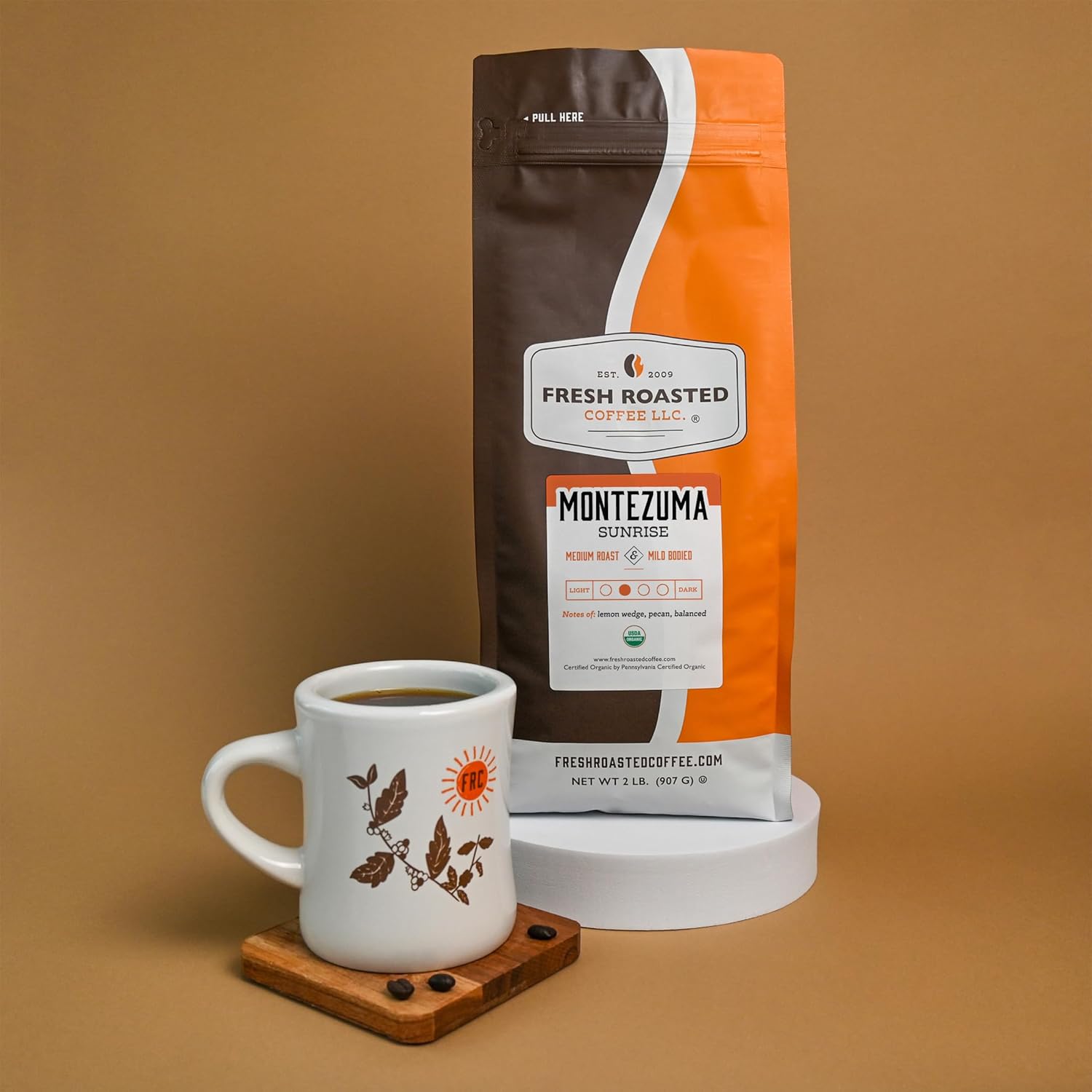 Fresh Roasted Coffee, Organic Montezuma Sunrise| USDA Organic, Kosher | Medium Roast 2 lb (32 oz) Ground