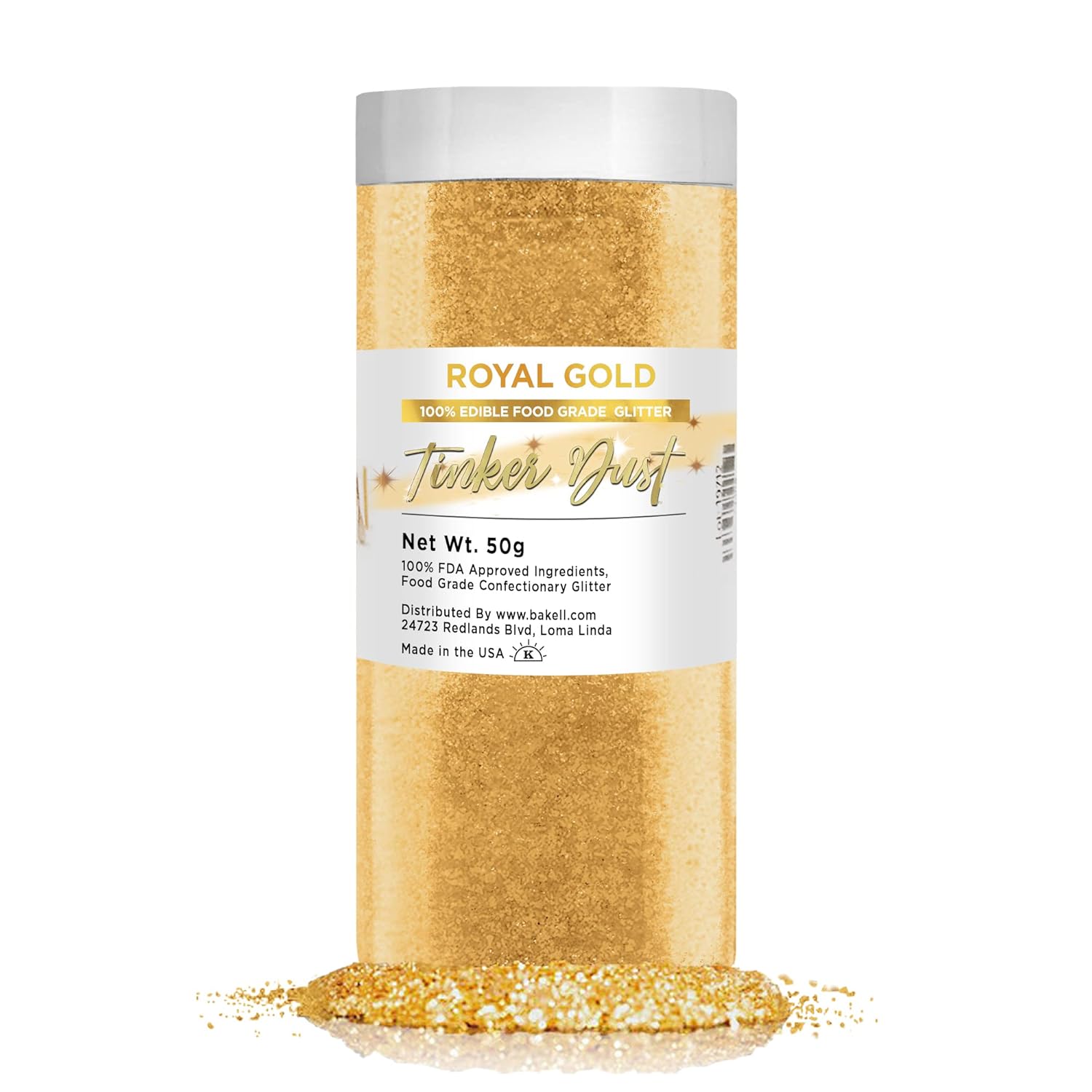 - BAKELL Royal Gold Edible Glitter, 50 Grams | TINKER DUST Edible Glitter | KOSHER Certified | 100% Edible Glitter | Cakes, Cupcakes, Cake Pops, Drinks, Dessert Vegan Glitter & Dusts