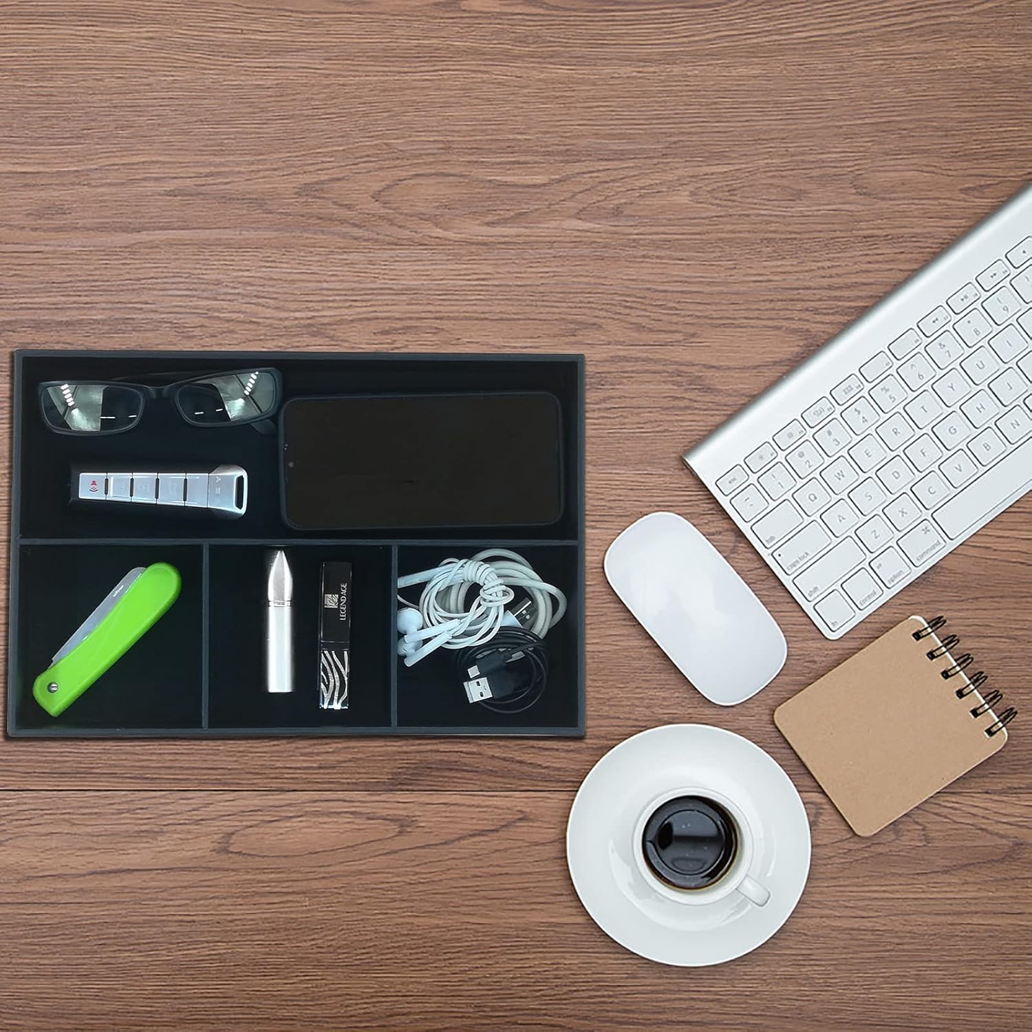- [Perfect design] 4 compartments, better classification and protection of accessories. The right size will not take up your extra space. Therefore, you don’t need to waste a lot of time searching for misplaced items. Make your space more tidy and orderly. The perfect daily tray, suitable for your desk, bedside table, dressing table, entrance hall, side table, etc.