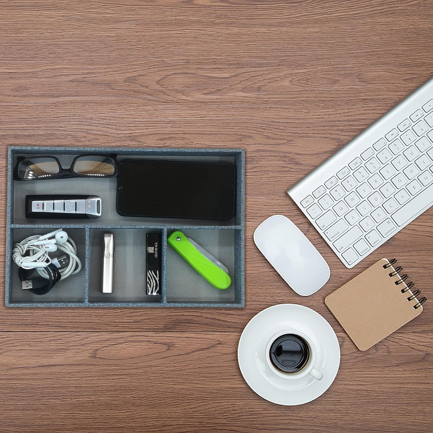 - [Perfect design] 4 compartments, better classification and protection of accessories. The right size will not take up your extra space. Therefore, you don’t need to waste a lot of time searching for misplaced items. Make your space more tidy and orderly. The perfect daily tray, suitable for your desk, bedside table, dressing table, entrance hall, side table, etc.