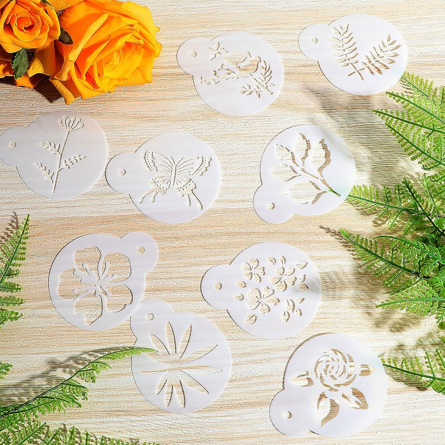 Marspark 30 Pieces Coffee Stencil Cookie Cake Stencils Latte Art Reusable Plastic DIY Bake Stencils Leaves Butterfly Flowers Bird for Coffee Cookie Drawing